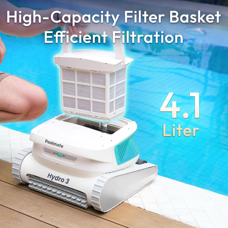 Extra-Large 4.1L Filter Basket with 180um Nylon Mesh: The oversized 4.1L filter basket, combined with a 180um nylon mesh, minimizes the need for frequent cleaning. It efficiently captures a wide range of debris and tiny particles, ensuring that your pool water remains crystal clear with minimal maintenance