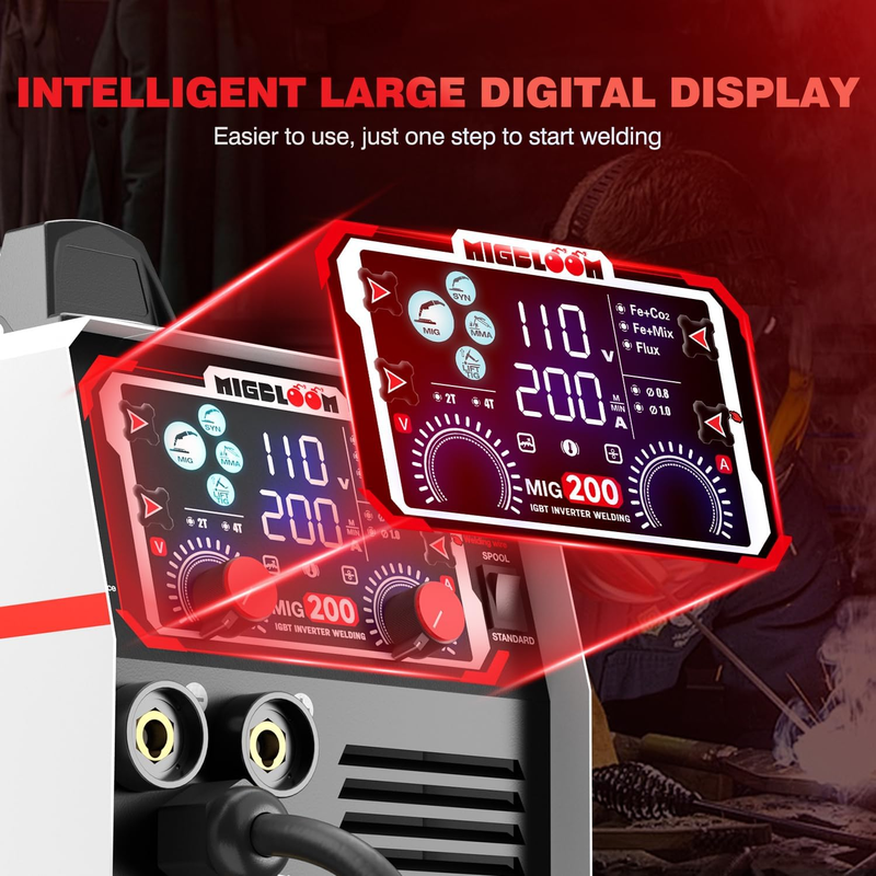 Multi Function Welder: These features include FLUX-CORED MIG, GAS MIG, SYN MIG, STICK, LIFT TIG, and SPOOL GUN capabilities (additional lift tig torch and spool gun required, not included). 2T/4T 2 types of welding to meet your needs. This versatility is suitable for a wide range of welding applications, suitable for both home repair work and construction site welding