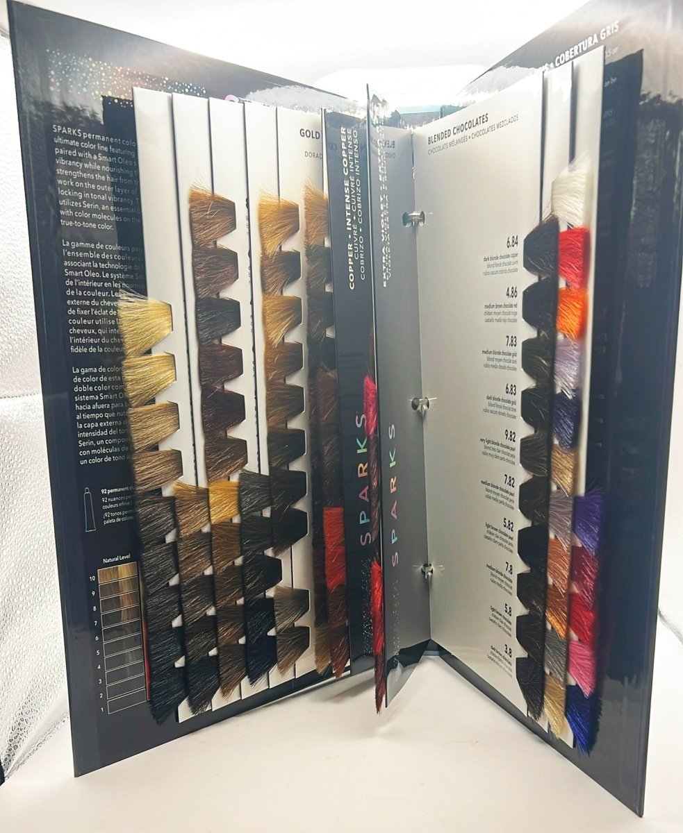 Discover the full potential of the Sparks Color line with the Sparks Color Hair Swatchbook, a complete and professional tool designed to showcase every available shade with accuracy and clarity. Perfect for salon consultations, this swatchbook helps stylists and clients visualize true-to-tone results, making it easier to choose the ideal color for any look or service.