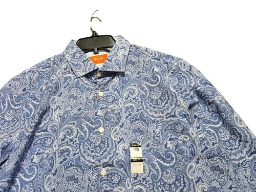 Tallia Men's Slim-Fit Stretch Paisley Dress Shirt - Blue-16-16.5 34/35