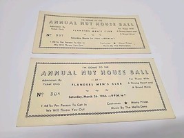 2-Vintage 1966 FLANDERS MENS CLUB Annual Nuthouse Ball Ticket Stationary