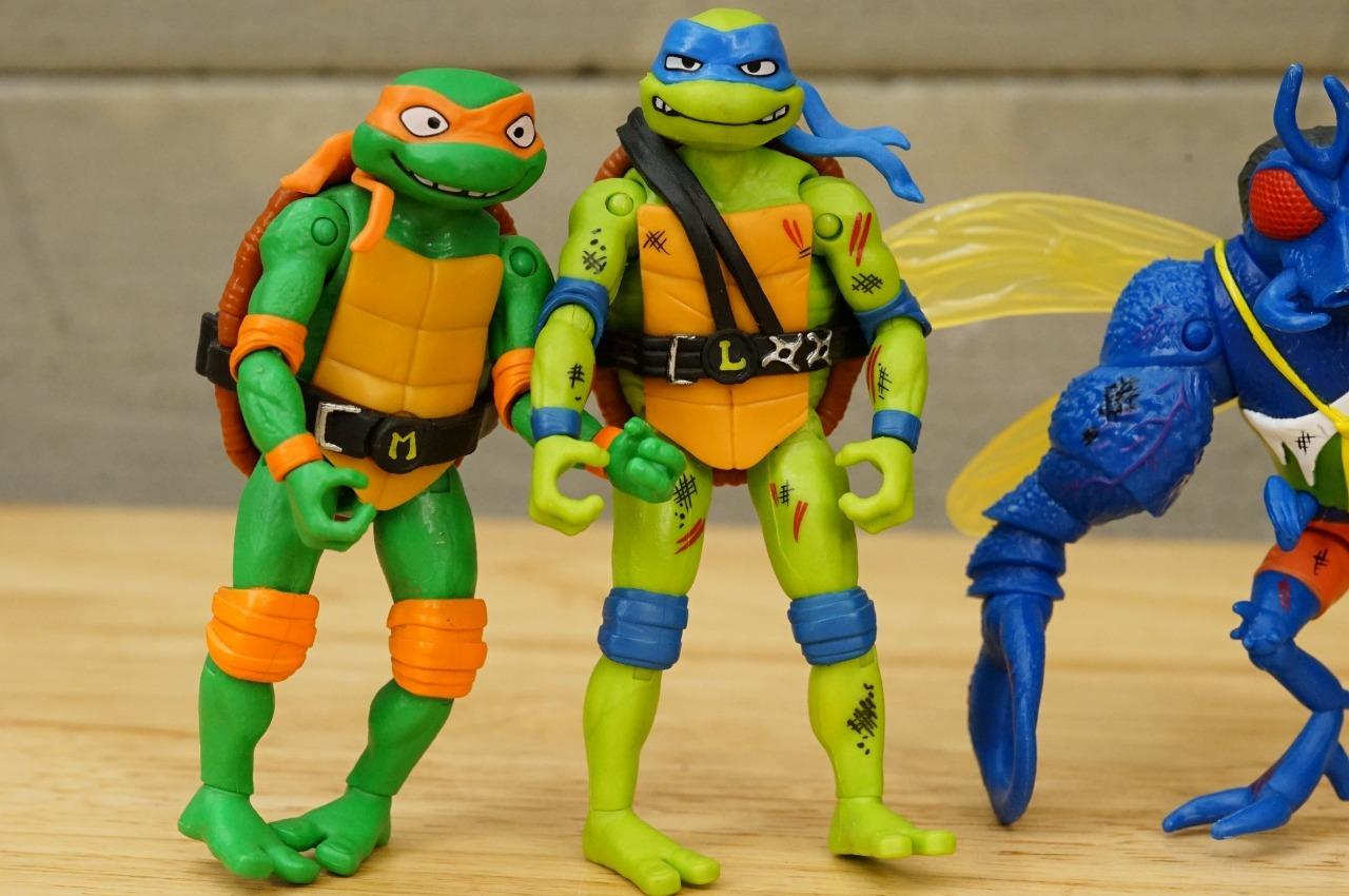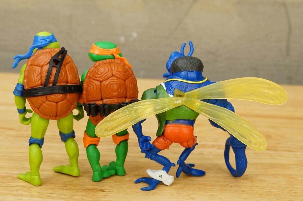 TMNT Teenage Mutant Ninja Turtle Toys Mutant Mayhem Playmates Michaelangelo, Leonardo and Super Fly (wing damage noted.) 4-4.5" tall. Articulated. No smoke or pet odors.