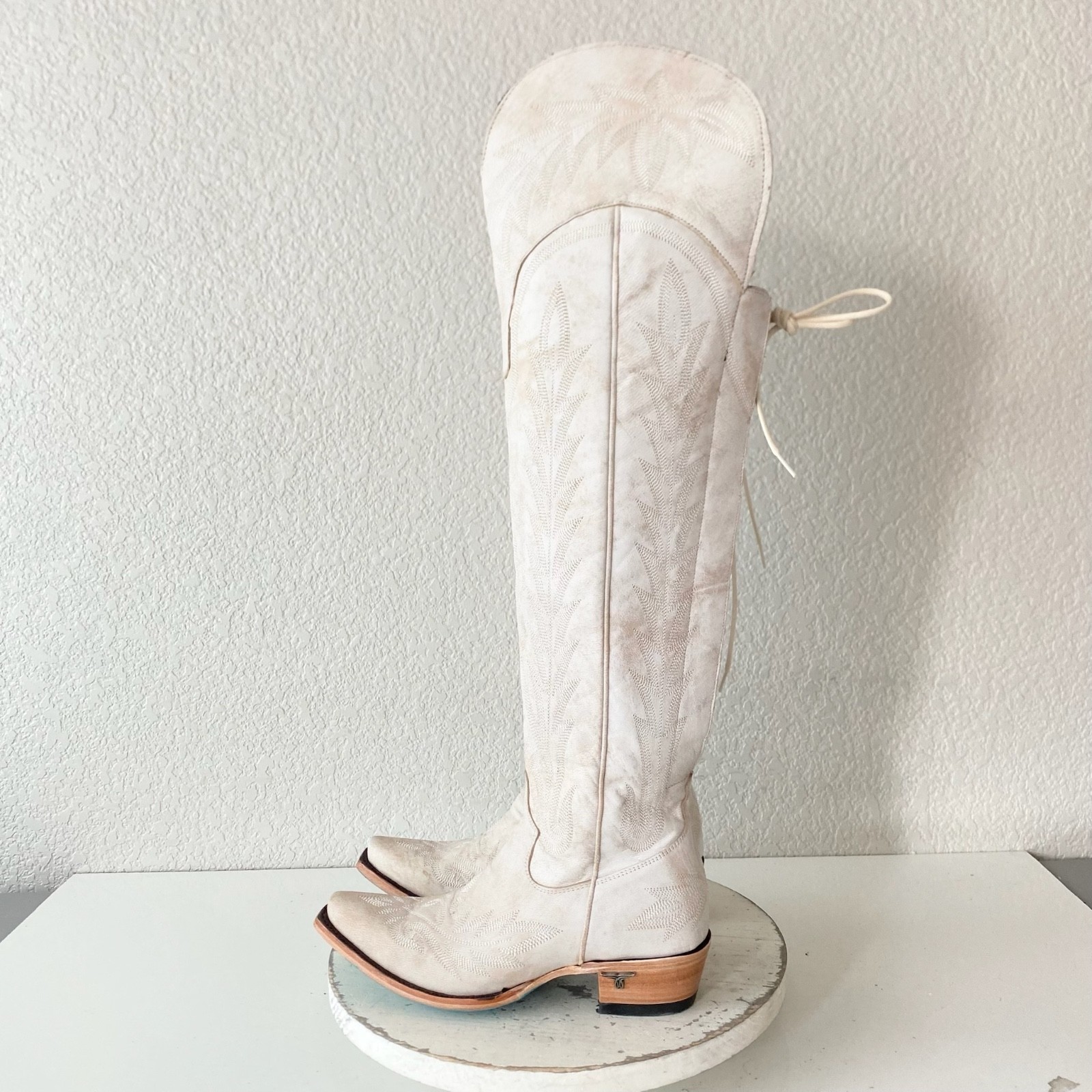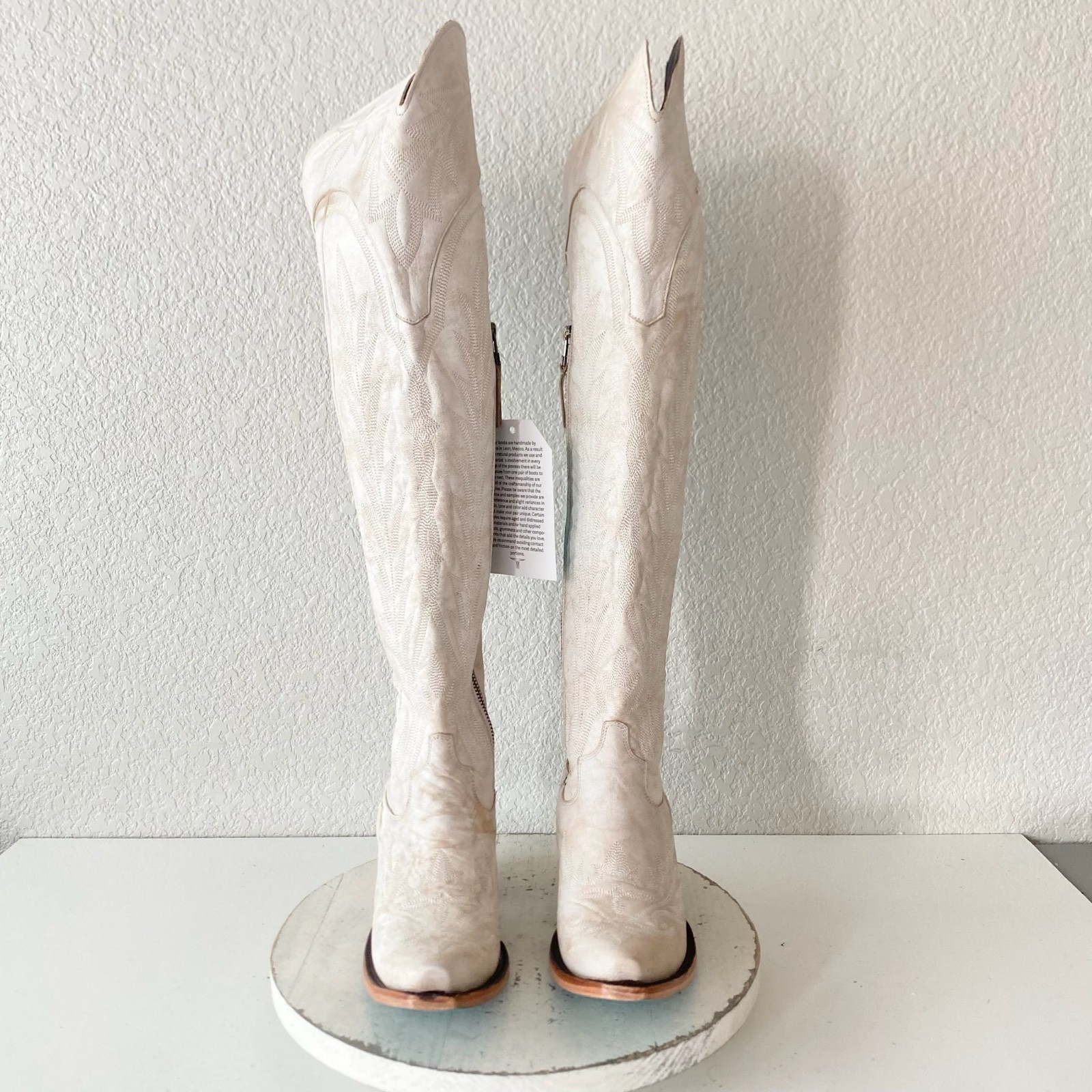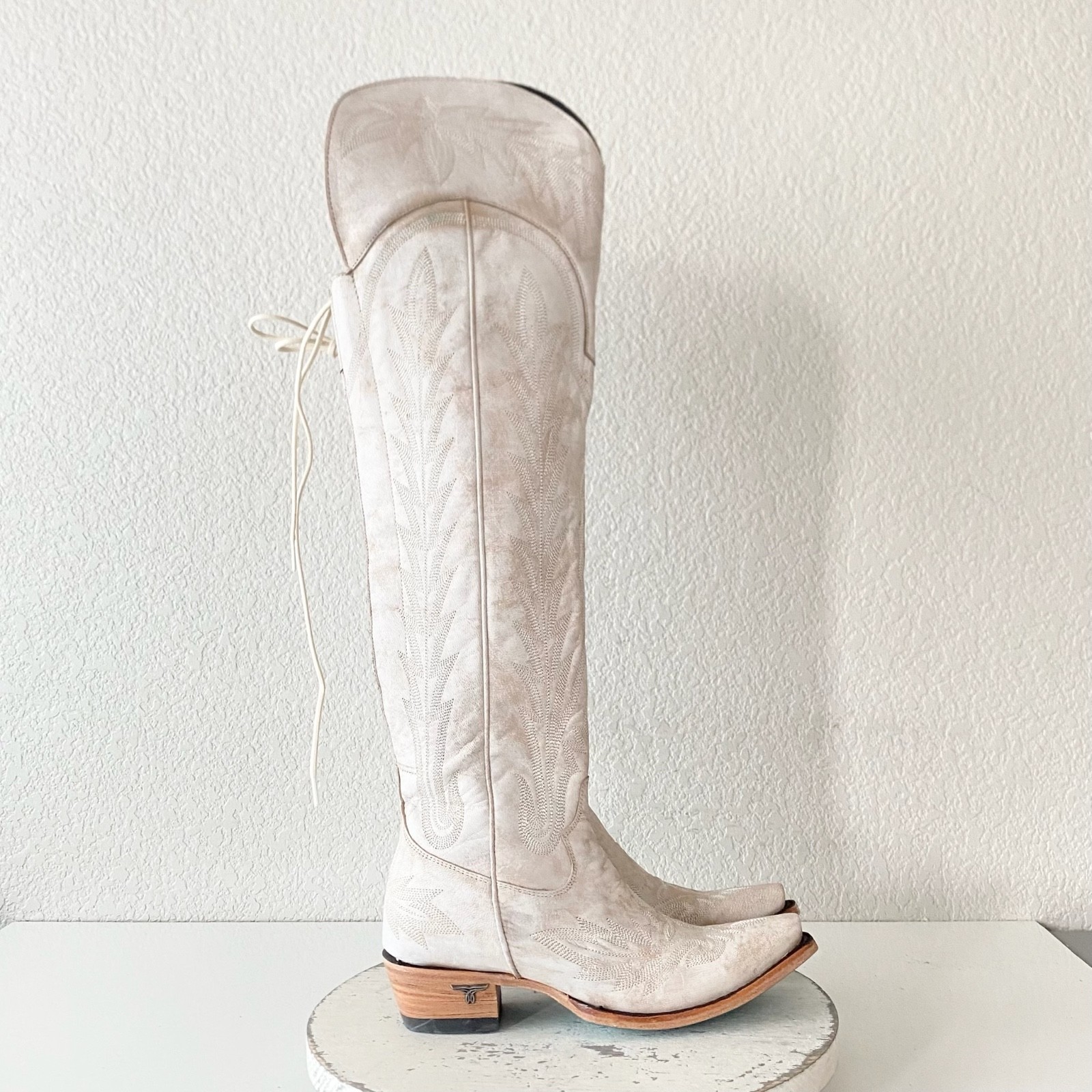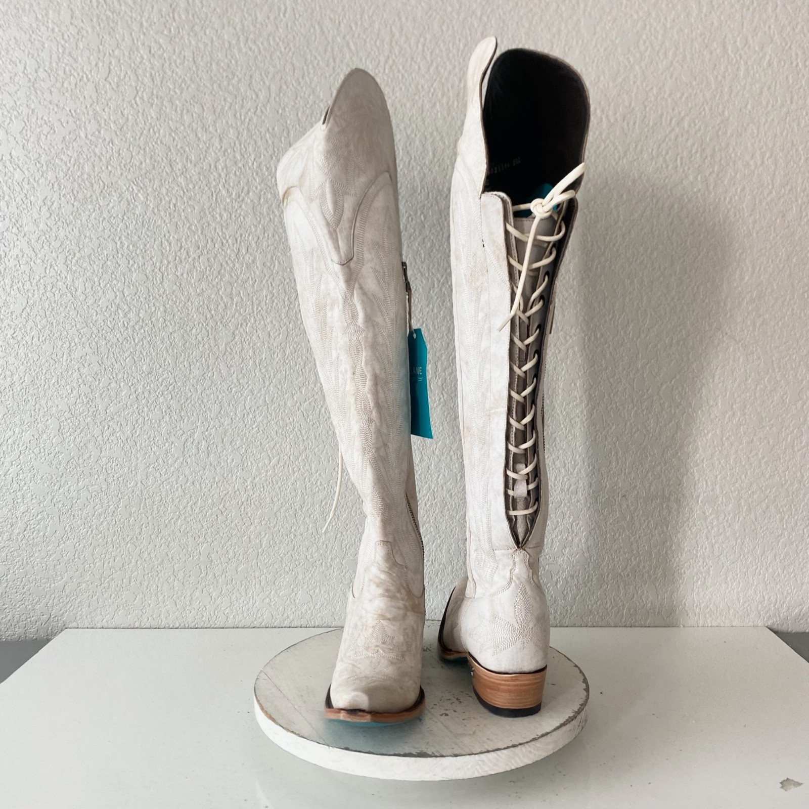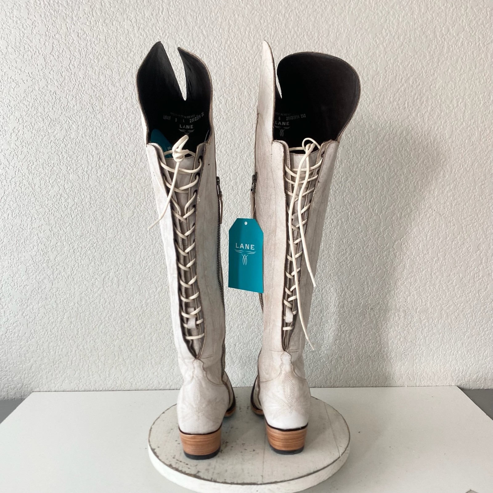 Lane LEXINGTON Over the Knee Womens Cowboy Boots 6 White Western Cowgirl Lace Up