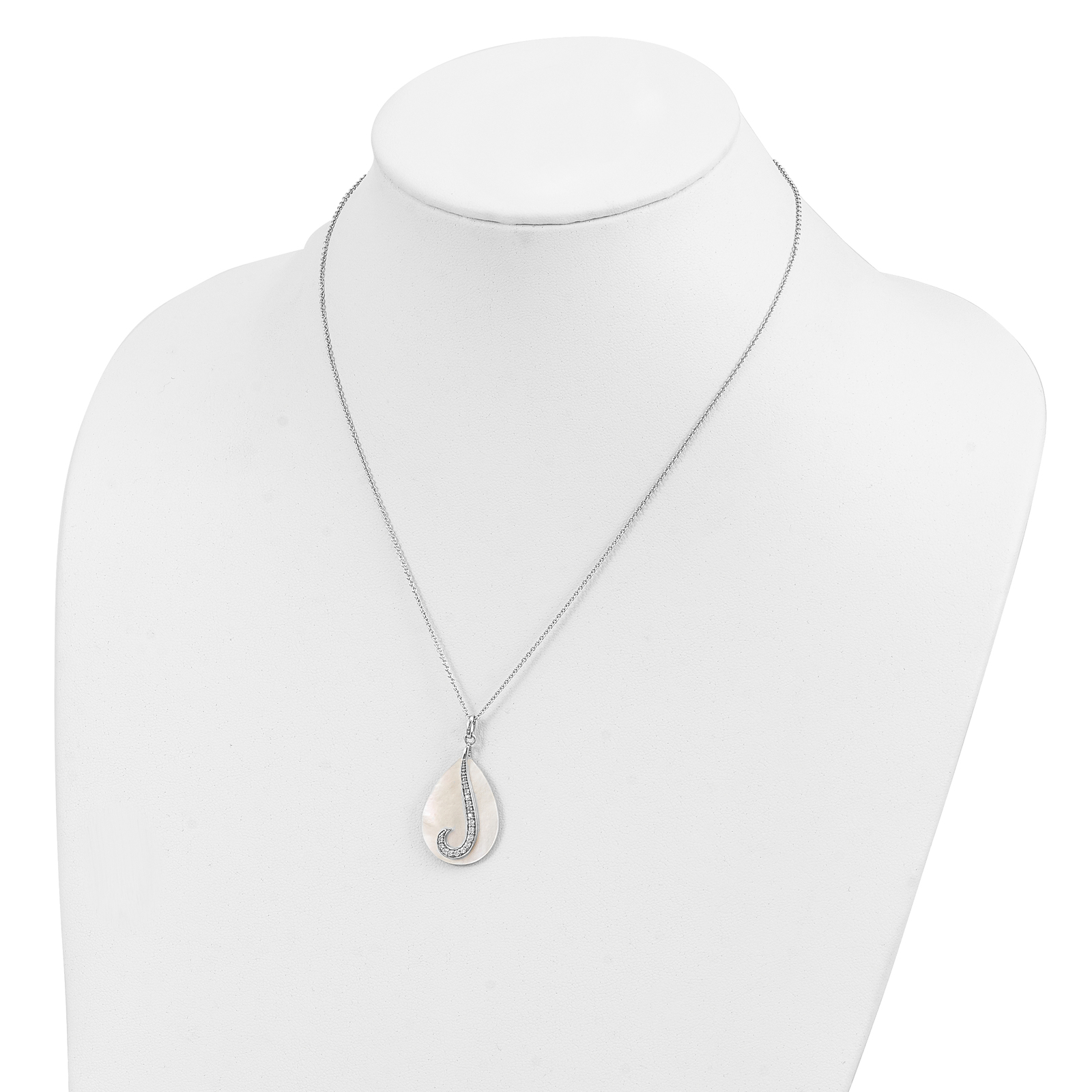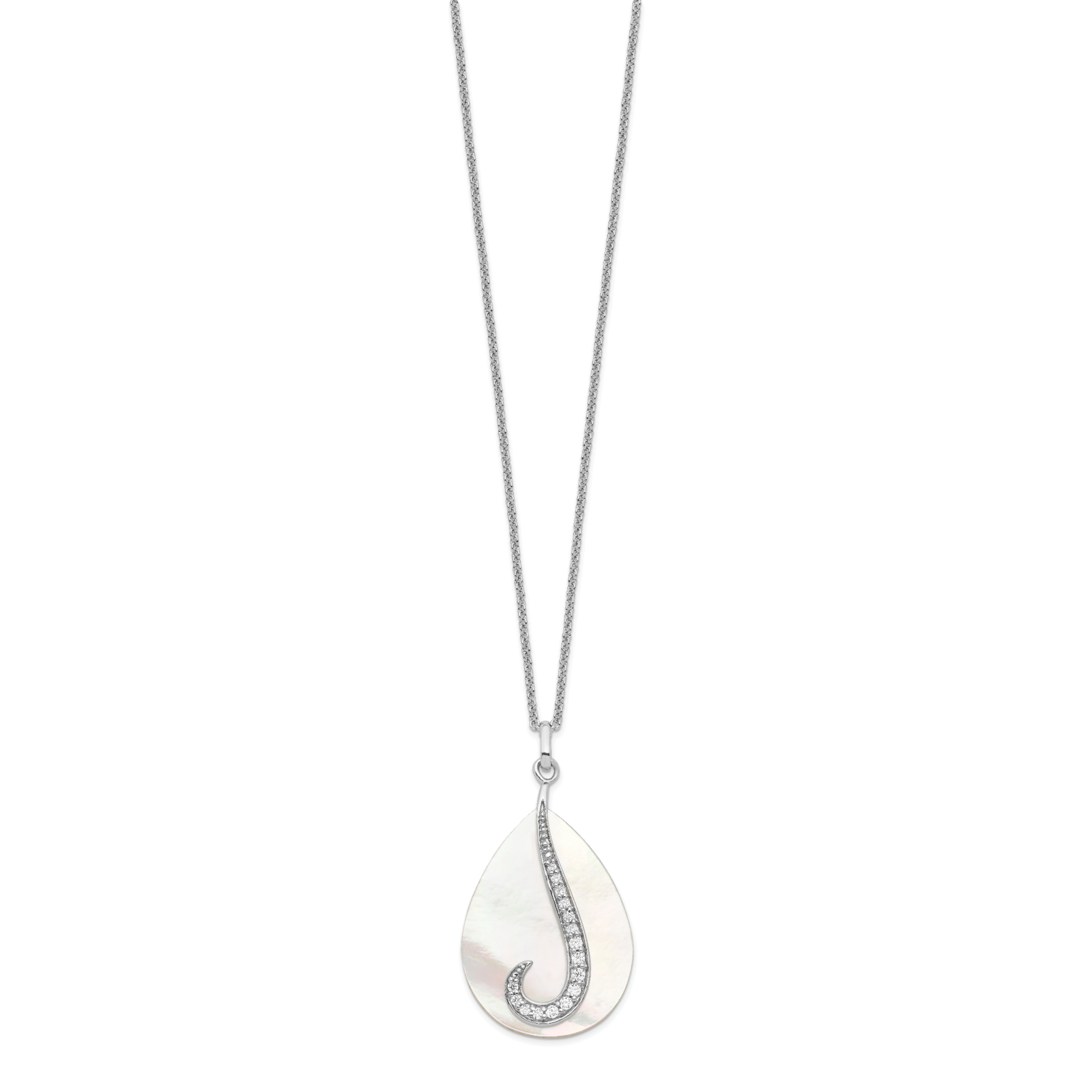 Sentimental Expressions Silver Mother of Pearl CZ Tear From Heaven 18in Necklac
