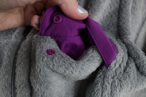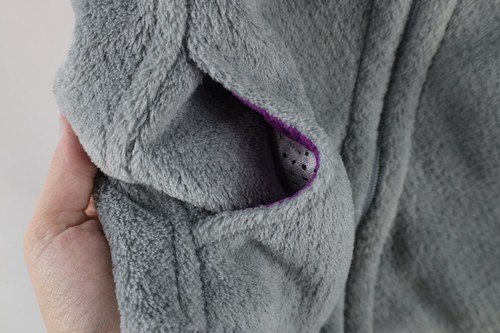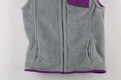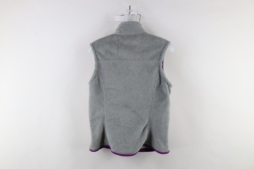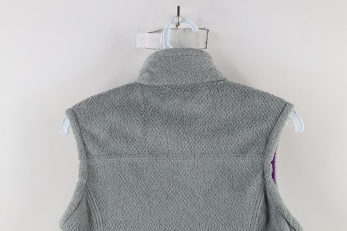 Patagonia Womens Small Spell Out Box Logo Re Tool Fleece Vest Jacket Gray Purple
