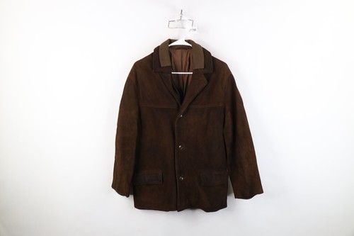 Vintage 50s 60s Streetwear Mens 36R Distressed Suede Leather Blazer Jacket Brown