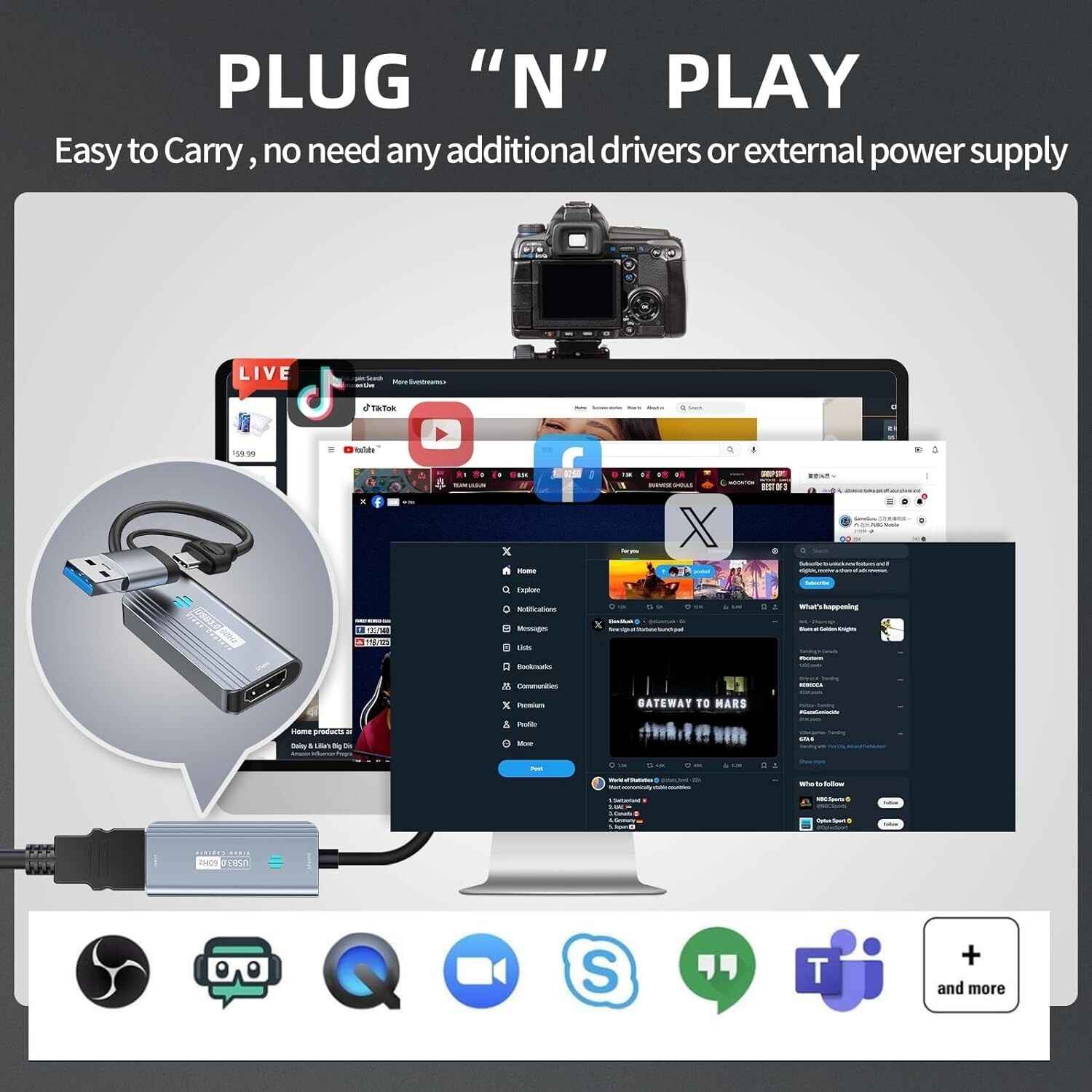 Portable 4K USB/USB C Capture Card - Ideal for Live Broadcasting Teaching