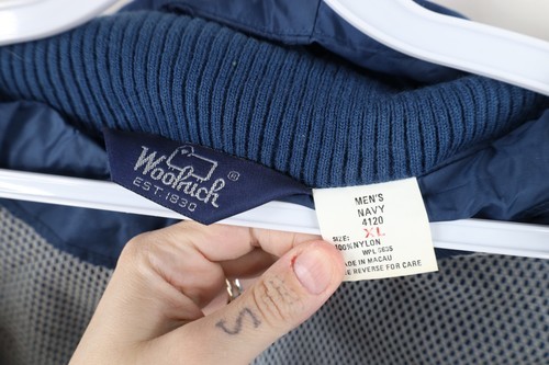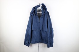 Vintage 90s Woolrich Mens XL Blank Hooded Full Zip Windbreaker Jacket Navy Blue