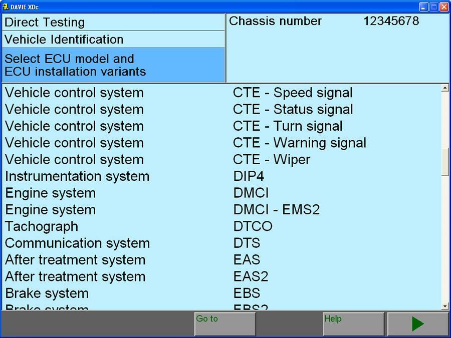 Con il kit DAF VCI 560 e possibile diagnosticare, risolvere i problemi e programmi: dopo il sistema di trattamento. Sistema ausiliario. Sistema di freni. Sistema climatico in cabina. Sistema di comunicazione. Sistema di controllo delle porte. Sistema motore. Hdobd. Sistema di strumentazione. Alimentazione e terra. Sistema ritardato. Sistema di sicurezza. Sistema di sicurezza. Sistema di controllo dello sterzo. Sistema di sospensione. Tachografo. Sistema di trasmissione. Sistema di controllo del veicolo.