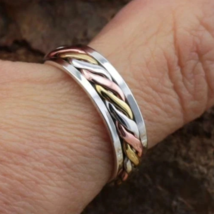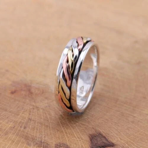 925 Sterling Silver + Brass + Copper, Solid Silver, Band Ring, Unisex