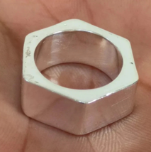 925 Sterling Silver, Solid Silver, Band Ring, Unisex, Hex Nut Hexagon Band Ring