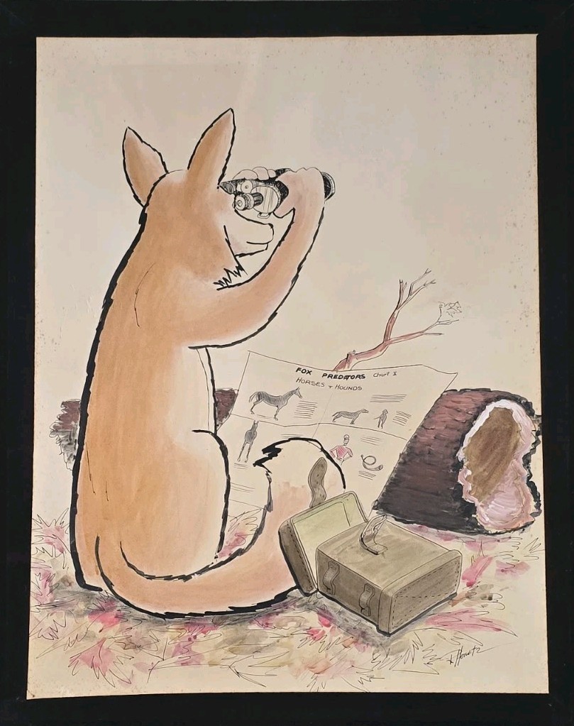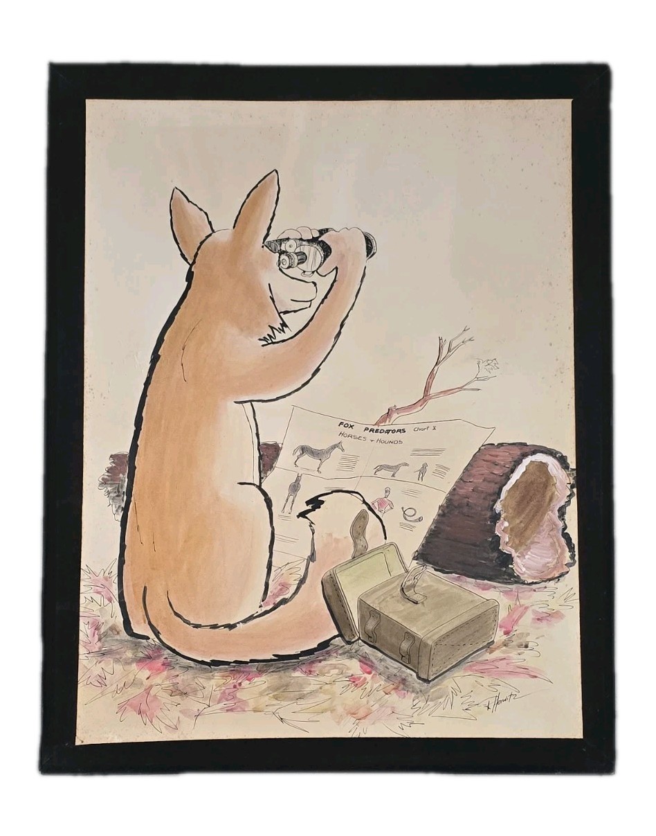 Rare R. Horwitz FOX HUNT Cartoon Comic Illustration Ink & Watercolor Art