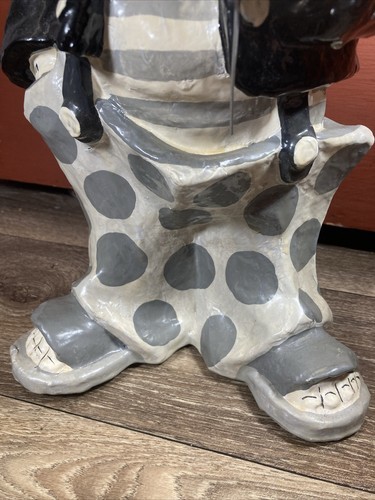 Vintage 1970s Paper Mache Clown Black And White Hobo Clown
