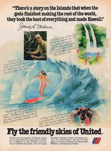 United Airlines Hawaii James Michener Surfing 1978 Vintage Print Ad
