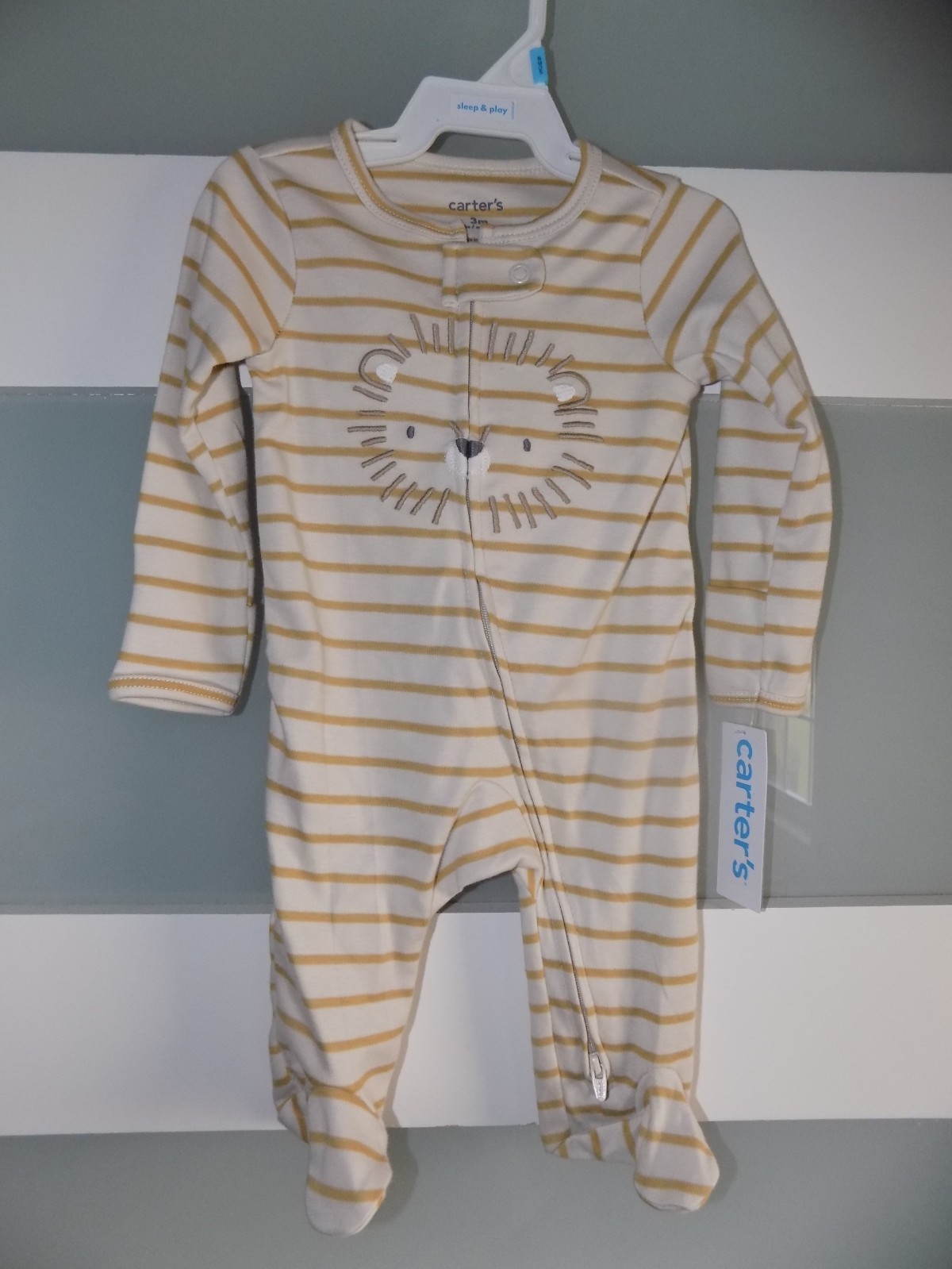Carter's Brown Striped Lion LS 2 Way Zipper Footie Size 3 Months Boy's New