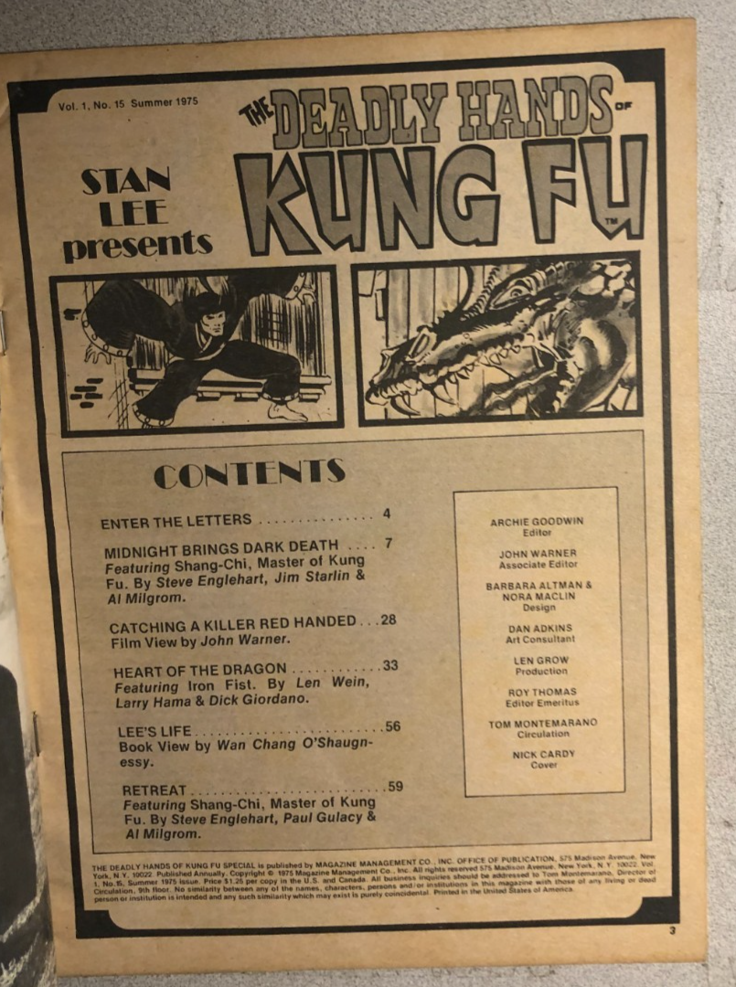 DEADLY HANDS OF KUNG-FU #15 (1975) Marvel Comics B&W magazine VG/VG+