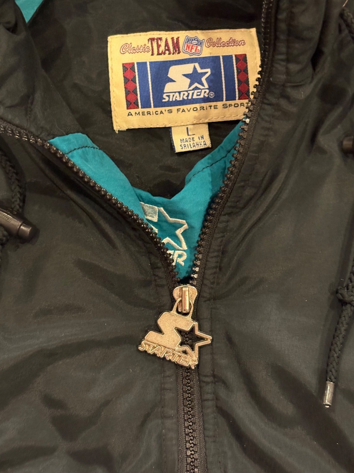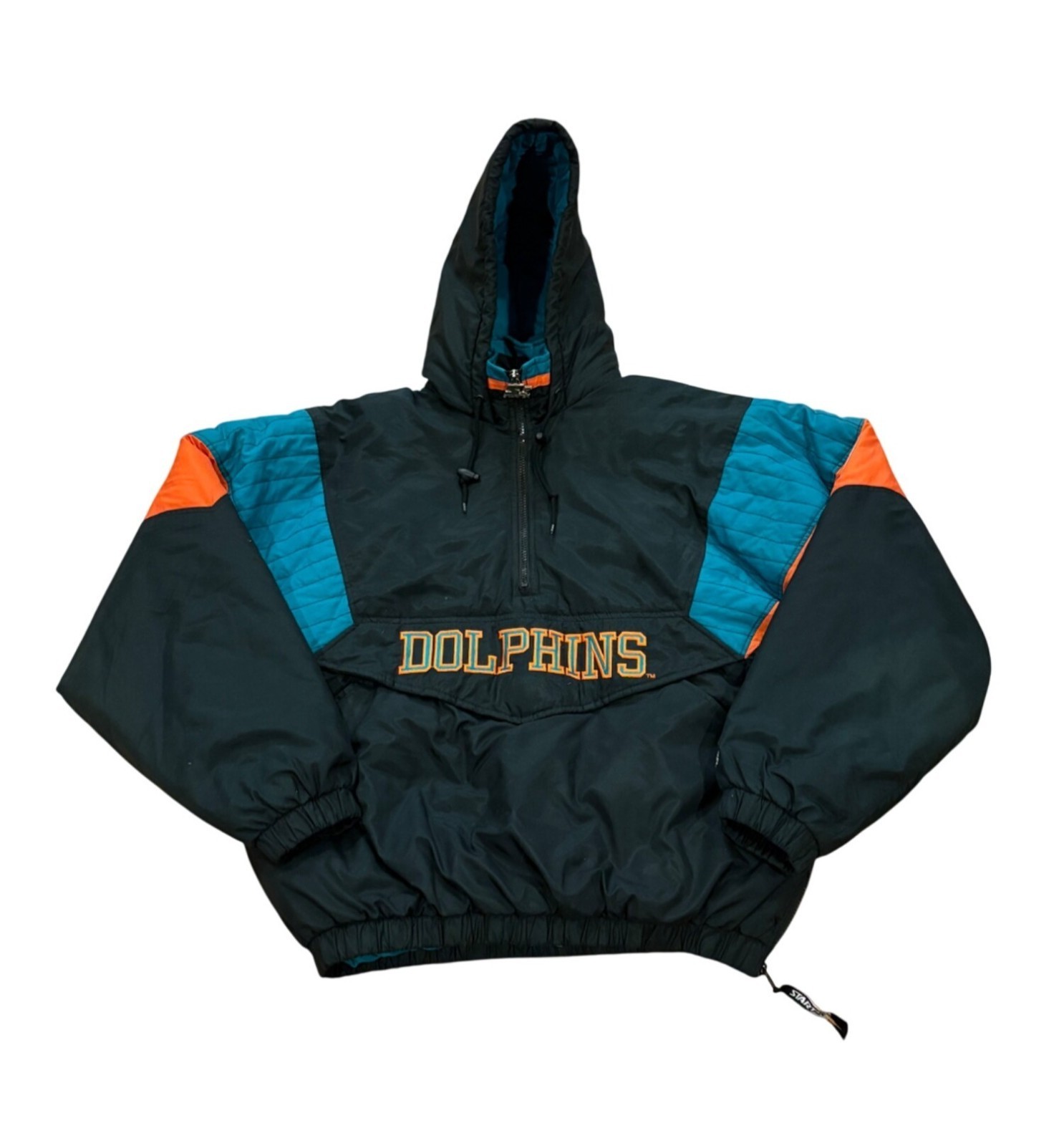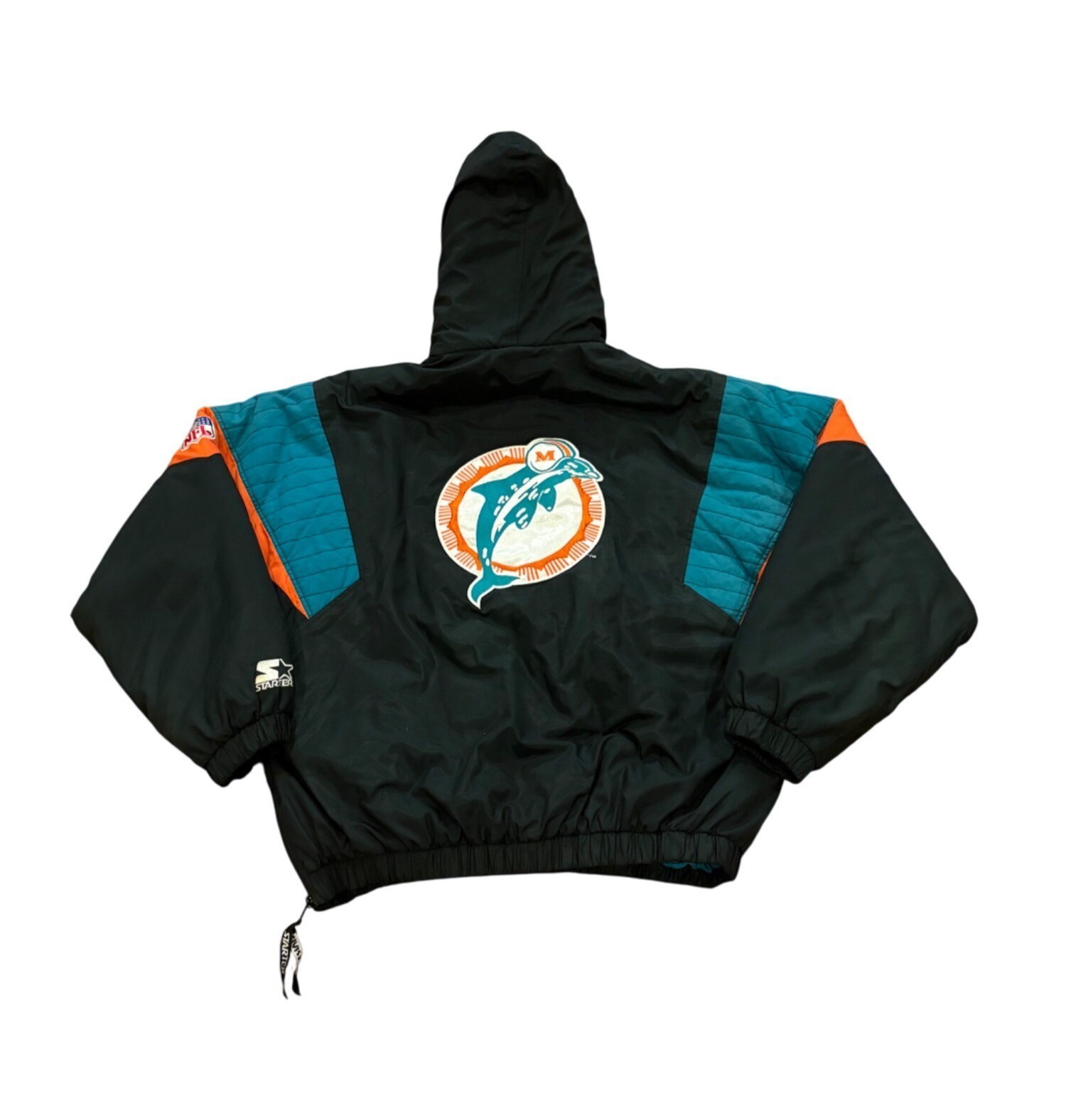Vintage 1990's Starter Miami Dolphins NFL Puffer Hooded Jacket Black Men's Large