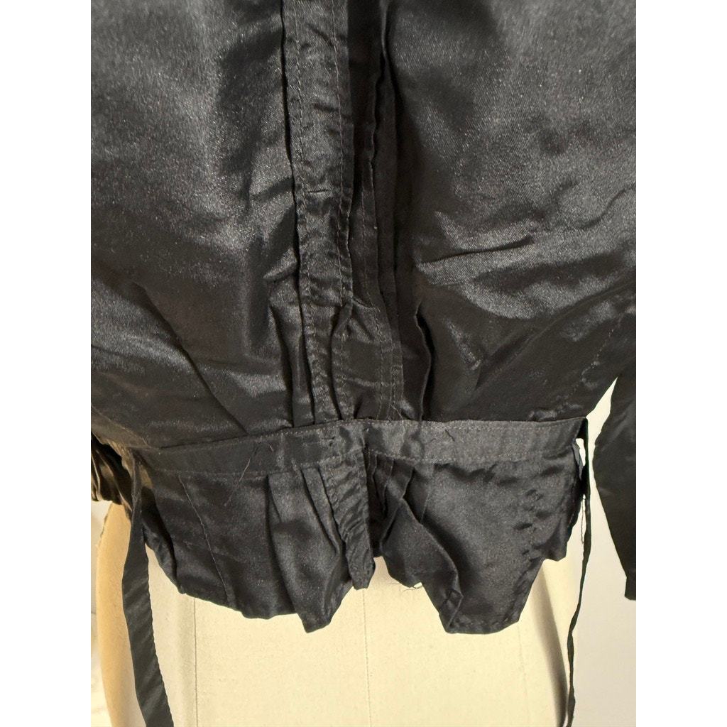 Antique Victorian Black Silk Waist Wrap Blouse Goth Steampunk Top S