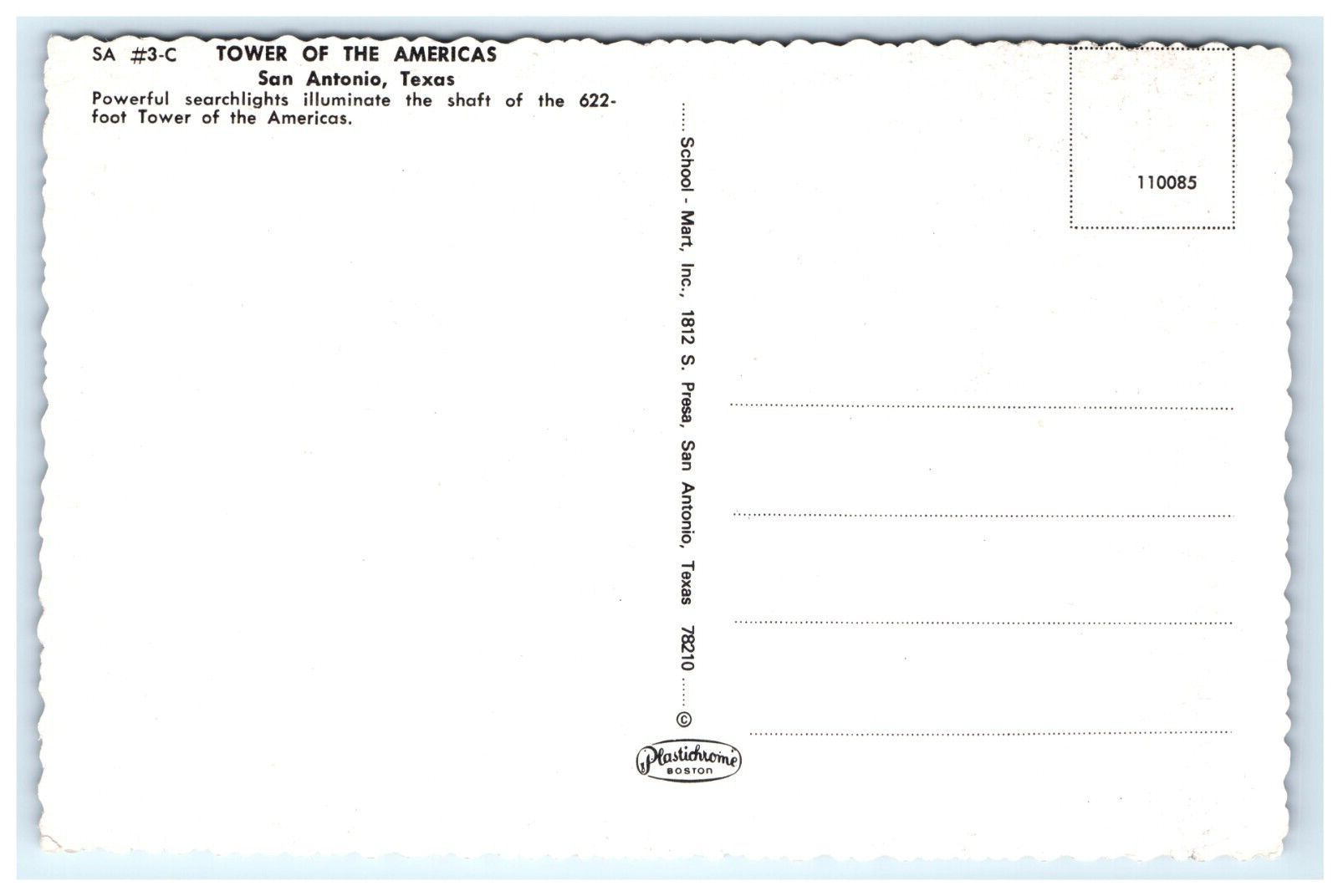 Vintage Divided Back Postcard Depicting the Tower of Americas Powerful Searchlights Illuminating the Shaft Located in San Antonio Texas.
