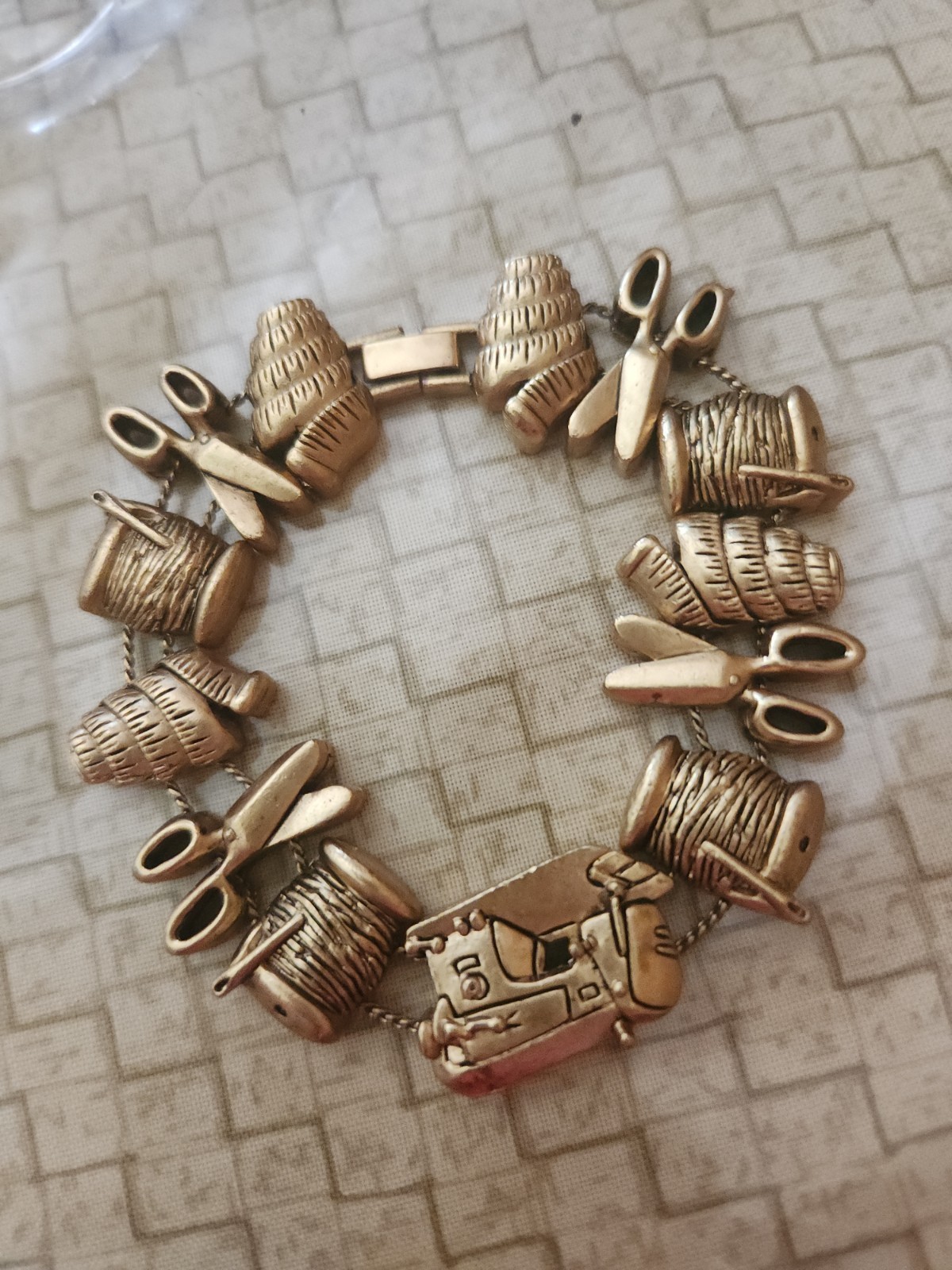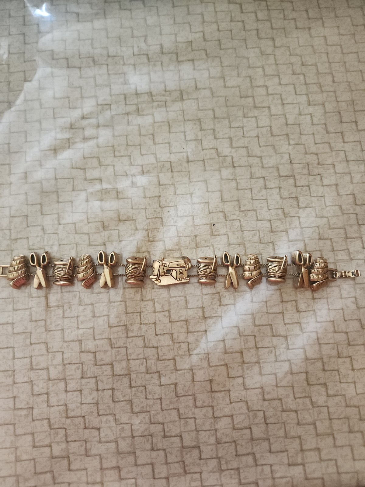 Vintage metal gold tone slider sewing bracelet 7.5" Seamstress Tailor