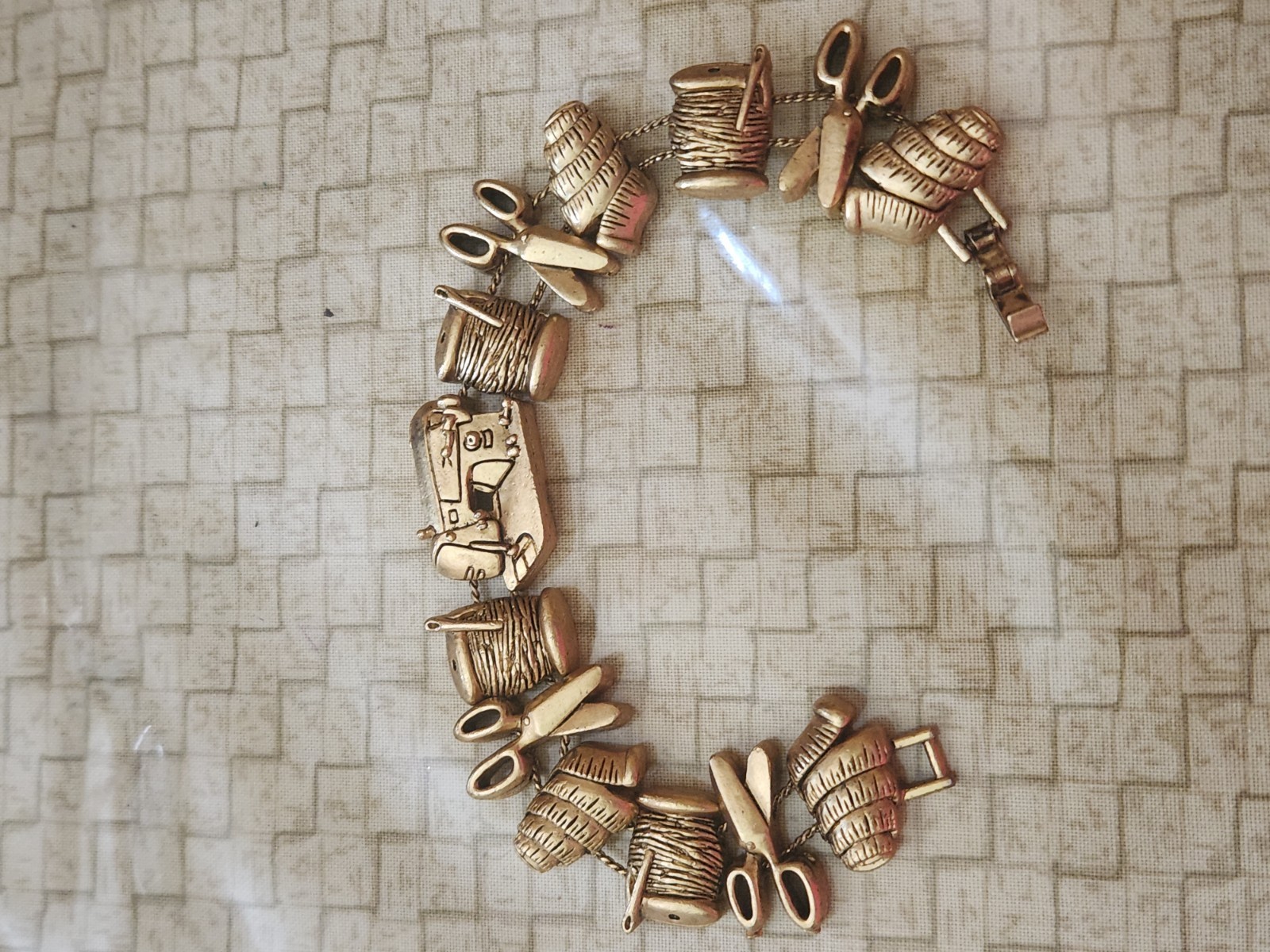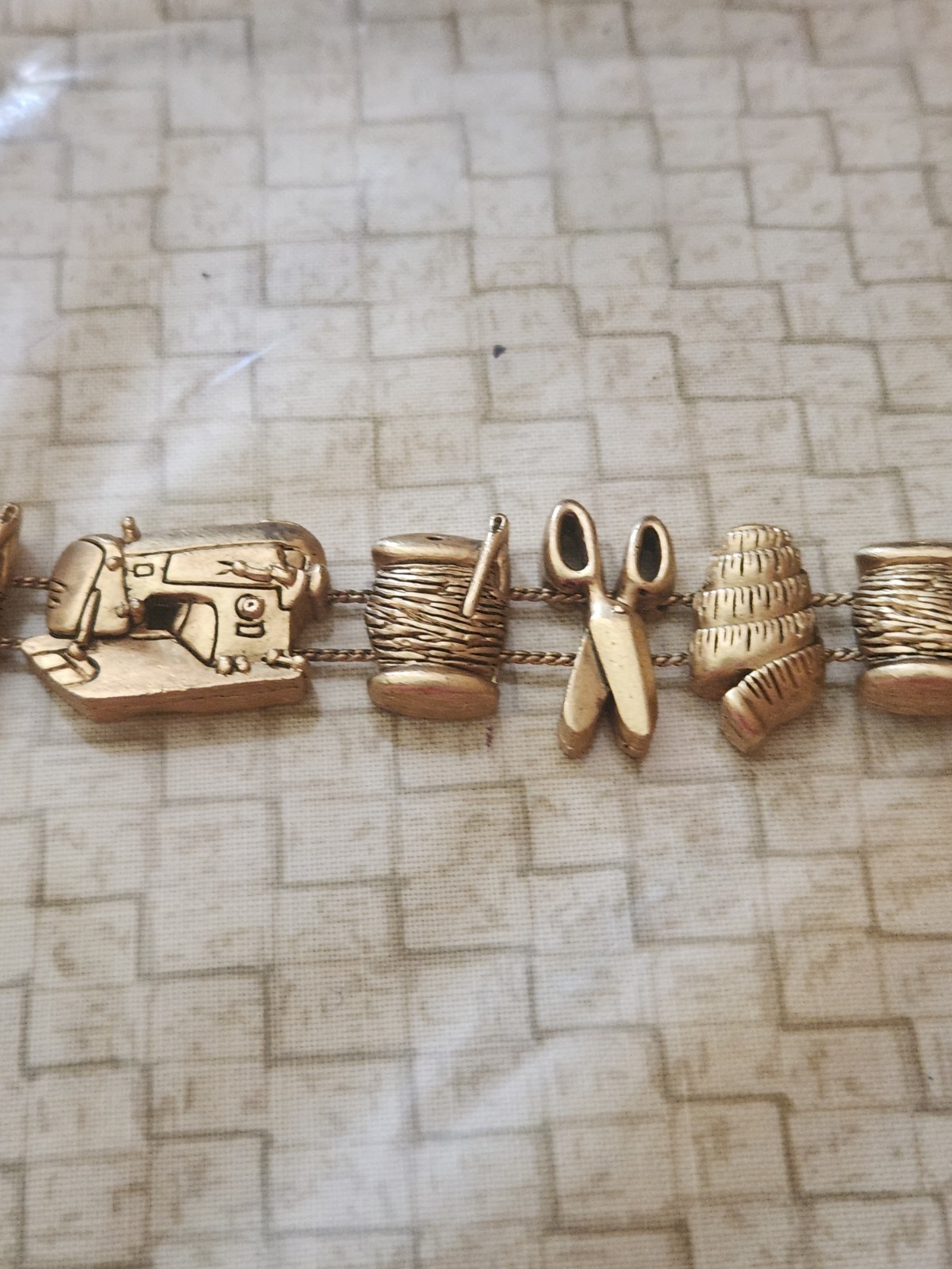 Vintage Metal Slider Bracelet Gold Tone Sewing 7.5" Seamstress Tailor