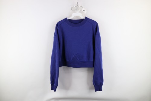 Everlane Womens Medium Distressed Blank Organic Cotton Cropped Sweatshirt Cobalt