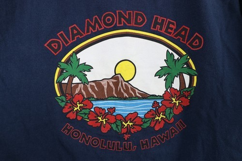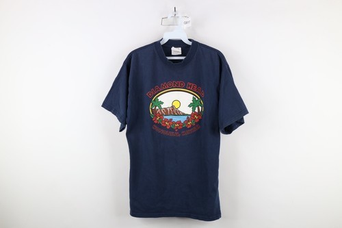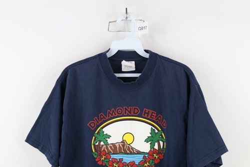 Vintage 90s Mens Large Faded Spell Out Diamond Head Honolulu Hawaii T-Shirt Blue