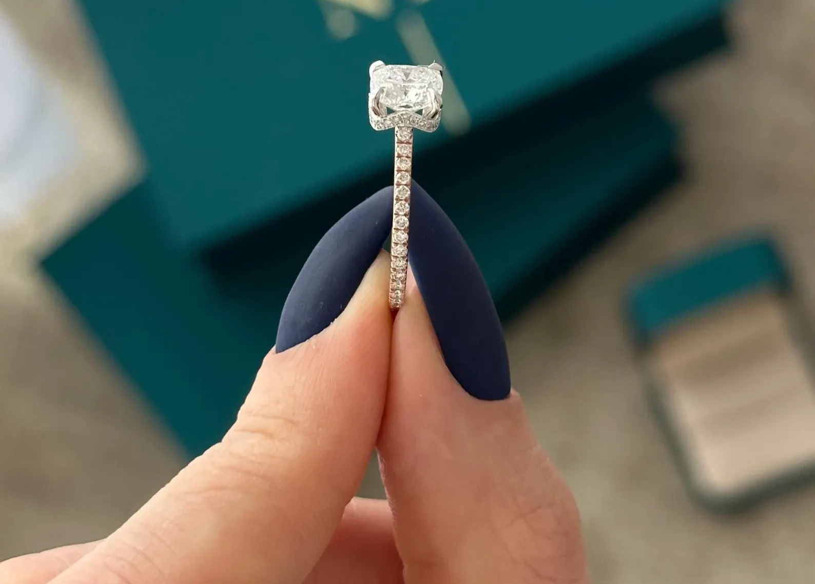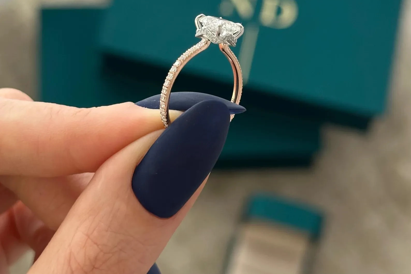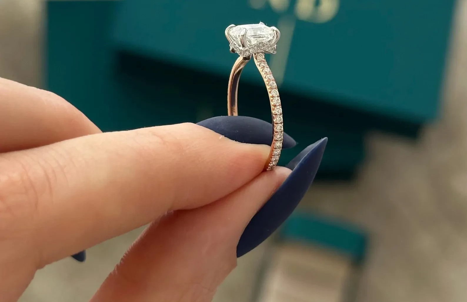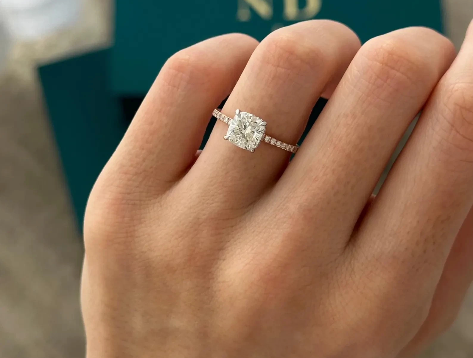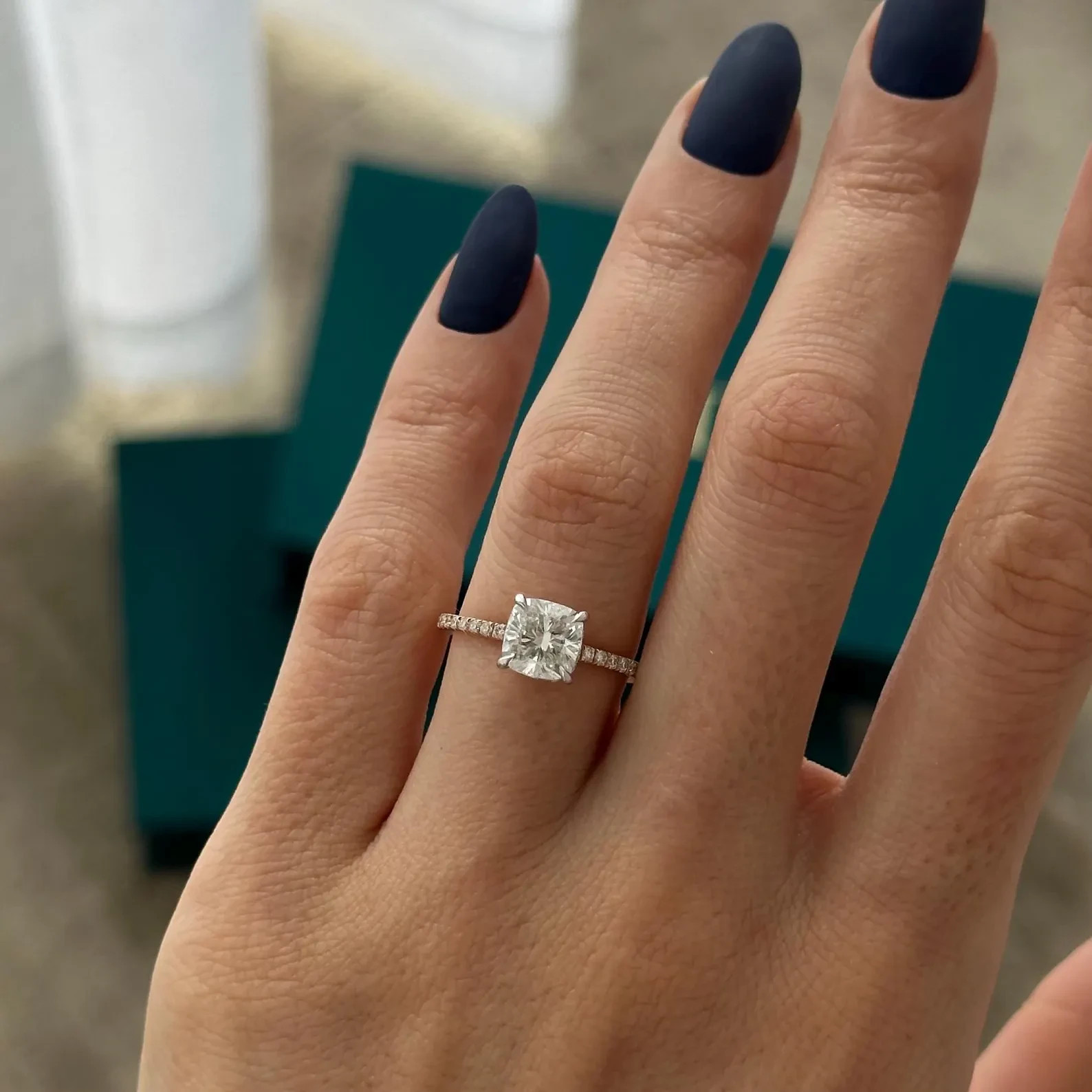 Unique Hidden Halo 1.50 Ct Square Cushion E VVS2 Engagement Ring 14k Rose Gold