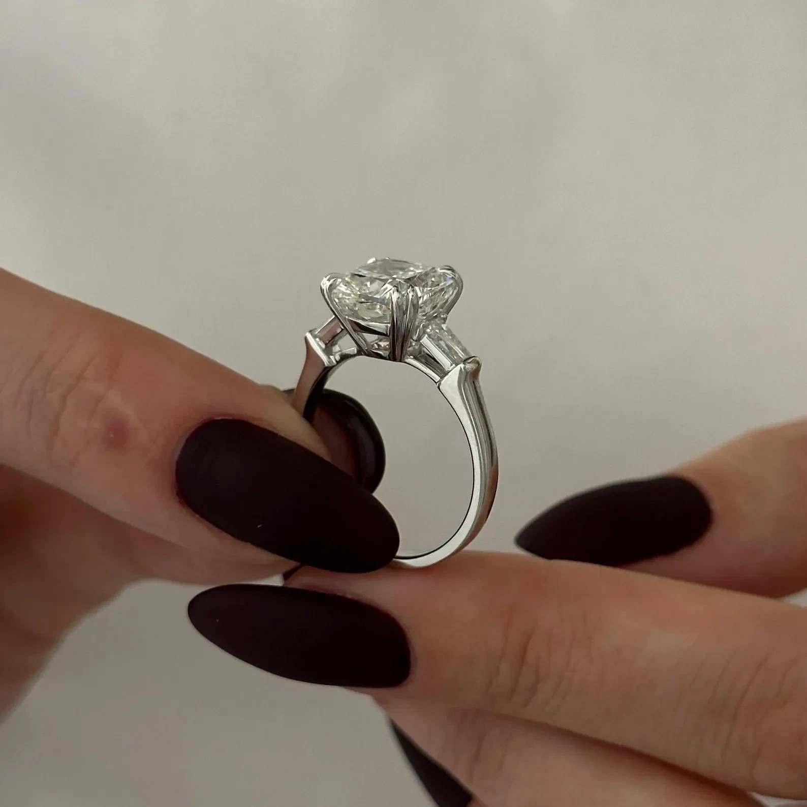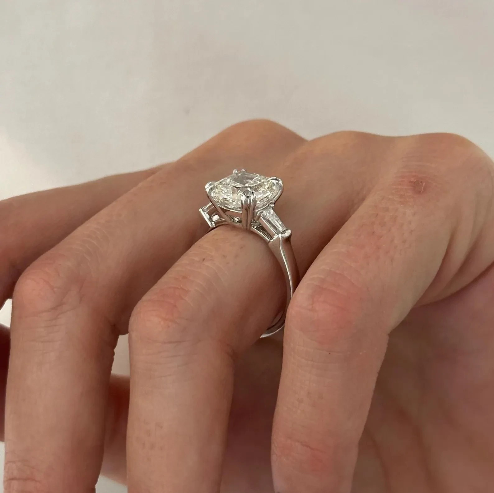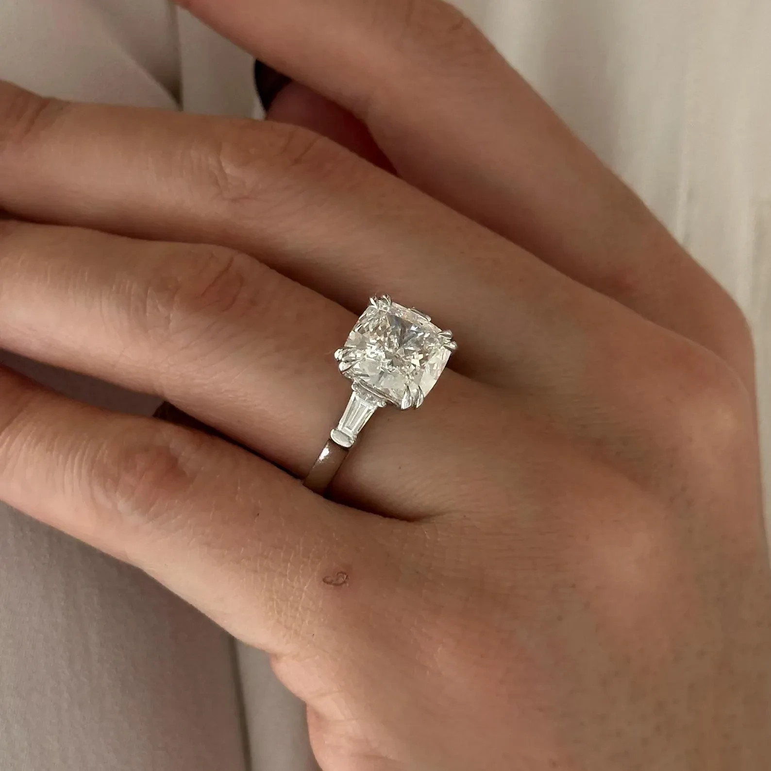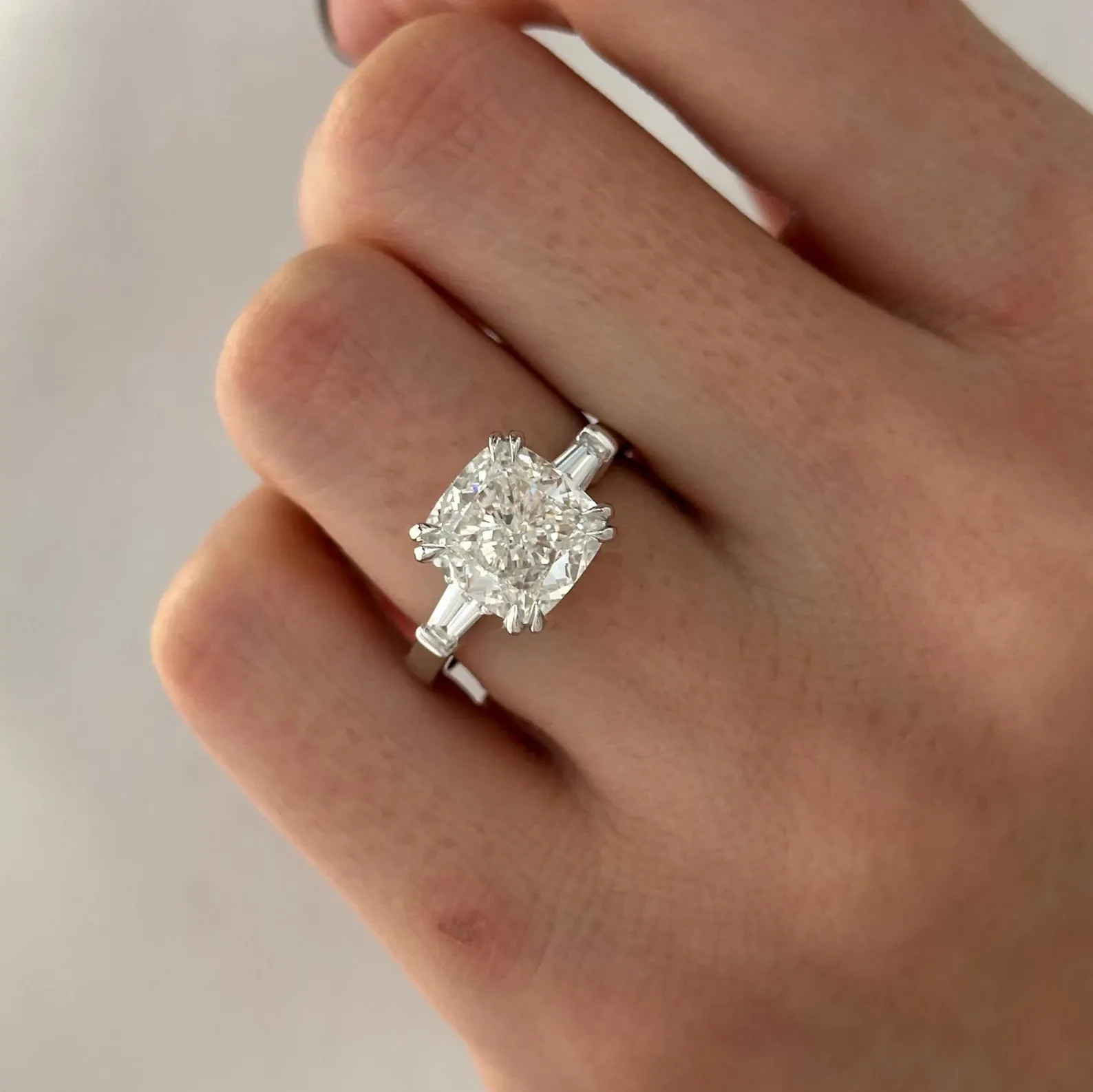 Lab Grown 7.00 Carat Cushion E VVS2 Diamond Three Stone Ring in 14k White Gold