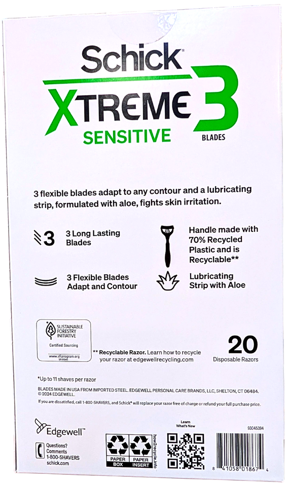 Schick Xtreme3 Sensitive DisposableRazors for Men 20 Count