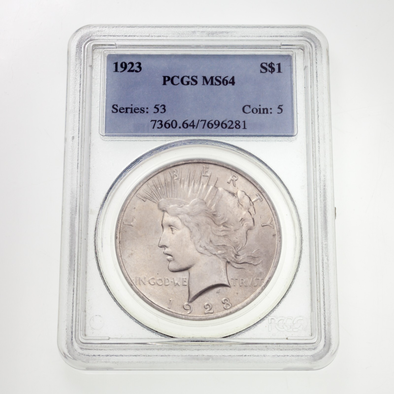1923 Silver Peace Dollar Graded by PCGS as MS-64! Gorgeous Coin