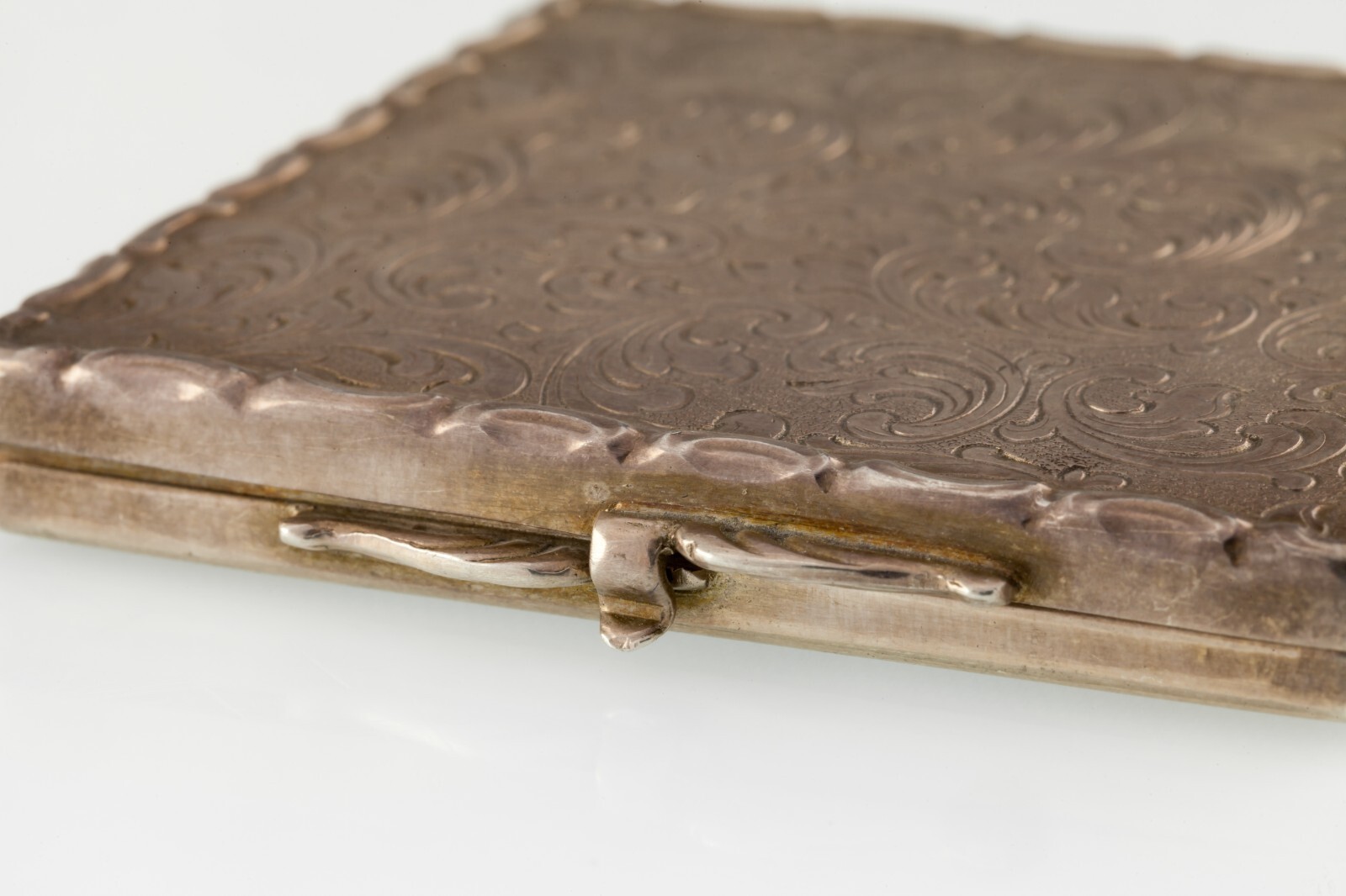 Antikes Silber -Make -up Compact mit Diamond Flora -Muster