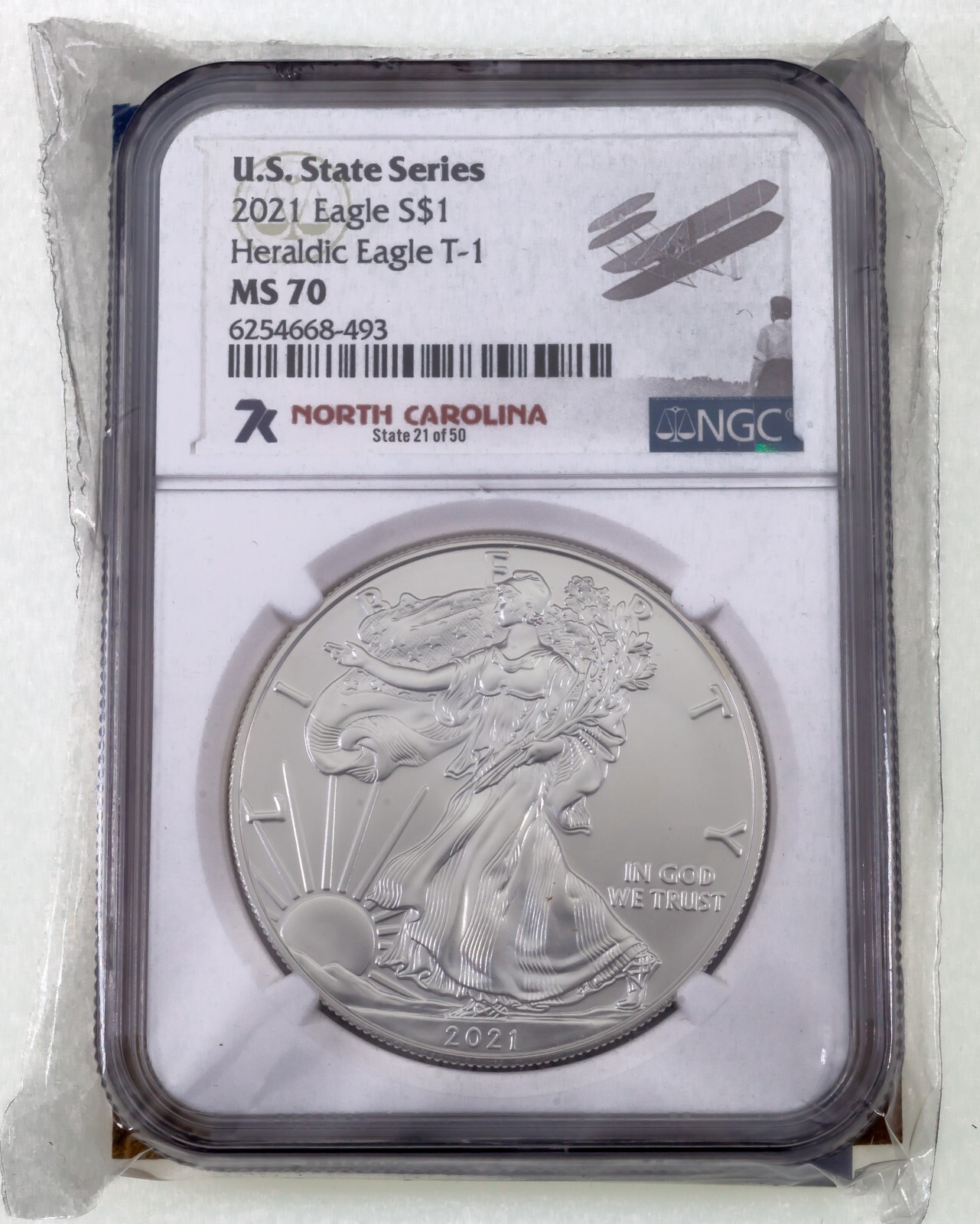 2021 Stati Uniti Serie Sc S $1 Aquila Selezionato Da NGC Come MS-70 Araldico T-1
