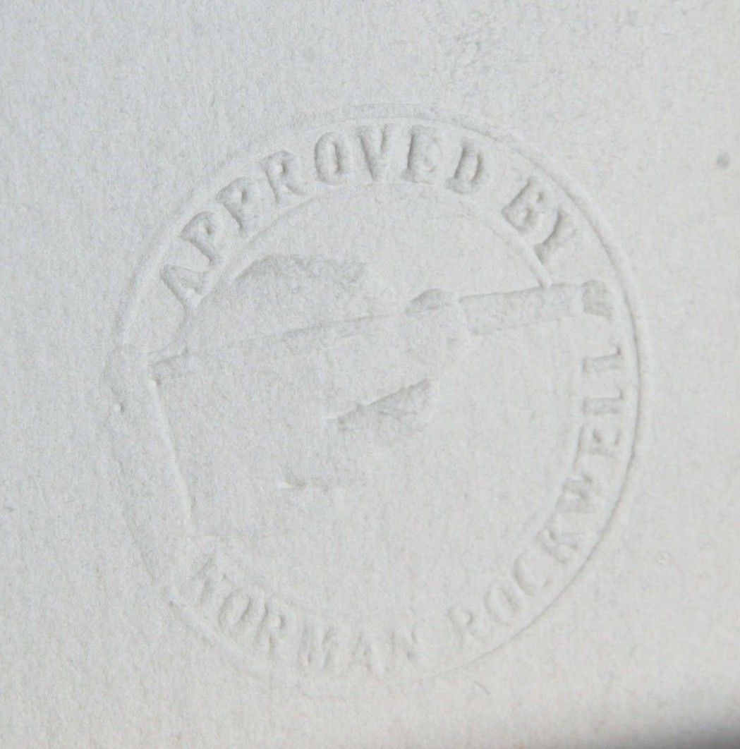 At the bottom margin of each print is the blind embossed seal of Atelier Ettinger Inc., as well as the blind embossed Norman Rockwell seal of approval.
