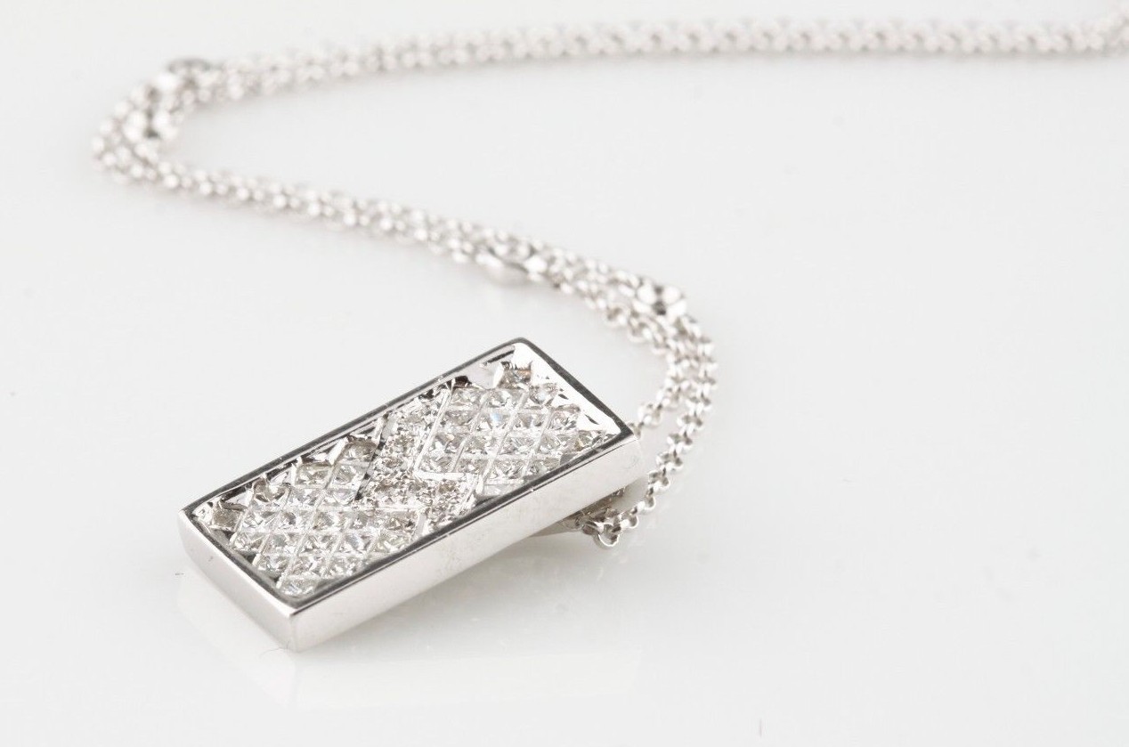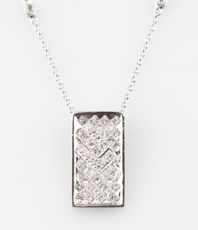 14K Weißgold Diamant Anhänger Mit Einzigartigem Plaketten Design TDW = 1,60 Ct