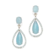 18K Weißgold Aquamarin Cabochon Und Diamant Anhänger Ohrringe 2-3/8" 28g