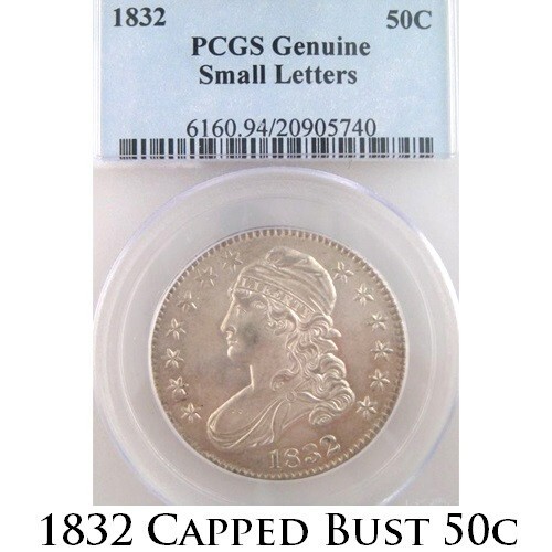 1832 50C Tapado Busto Medio Dolar Graduado Por PCGS Como Genuino Pequeño Letras