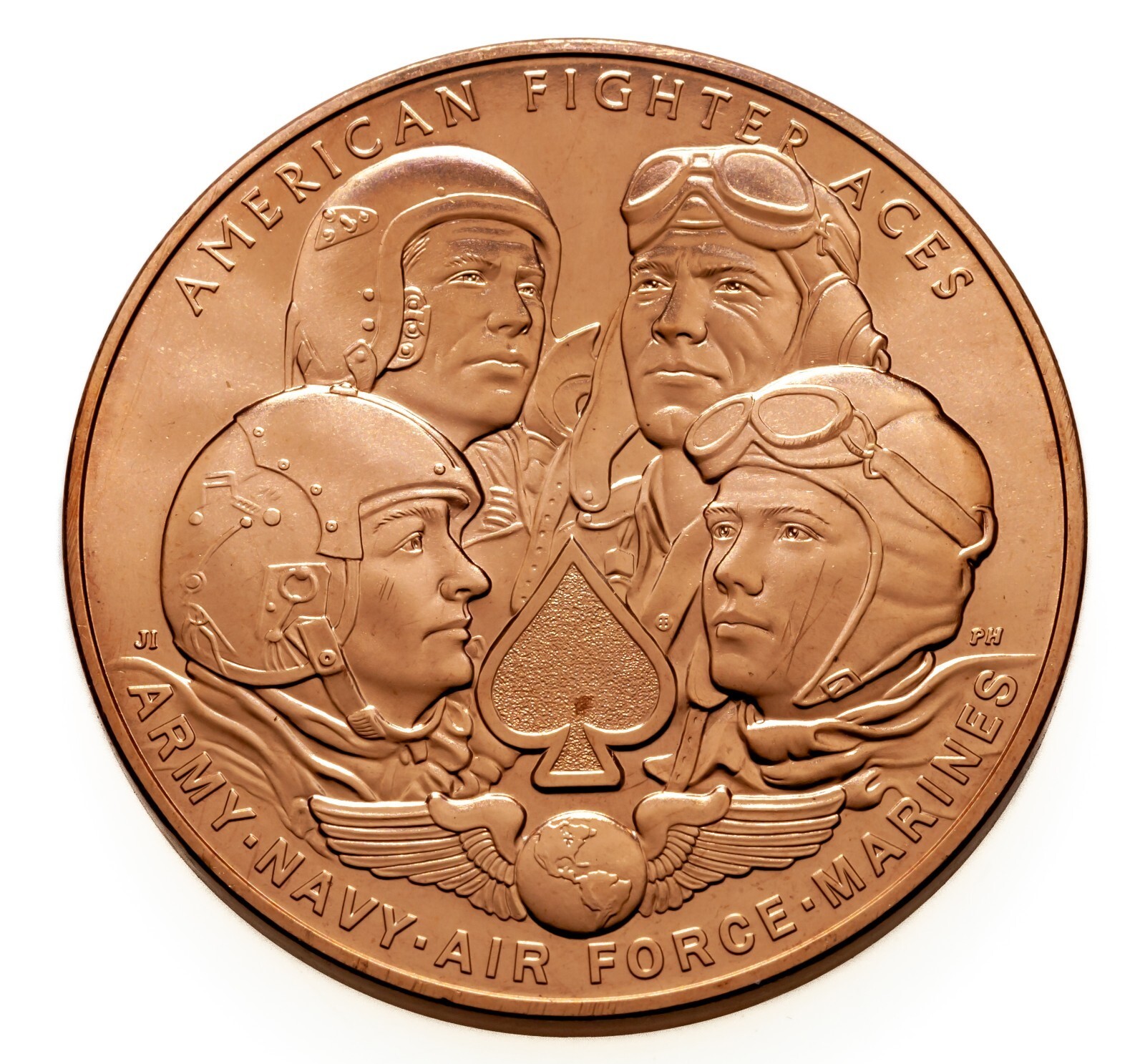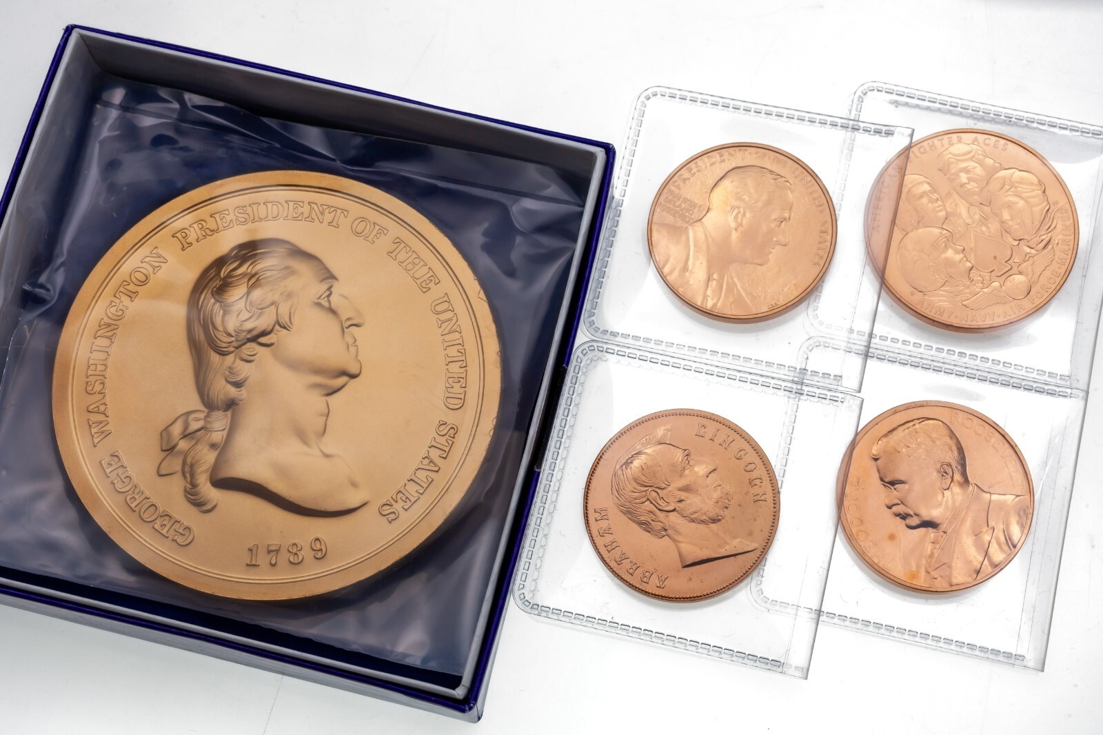 Lotto di 5 medaglie statunitensi in bronzo Washington American Fighter Aces presidenziali