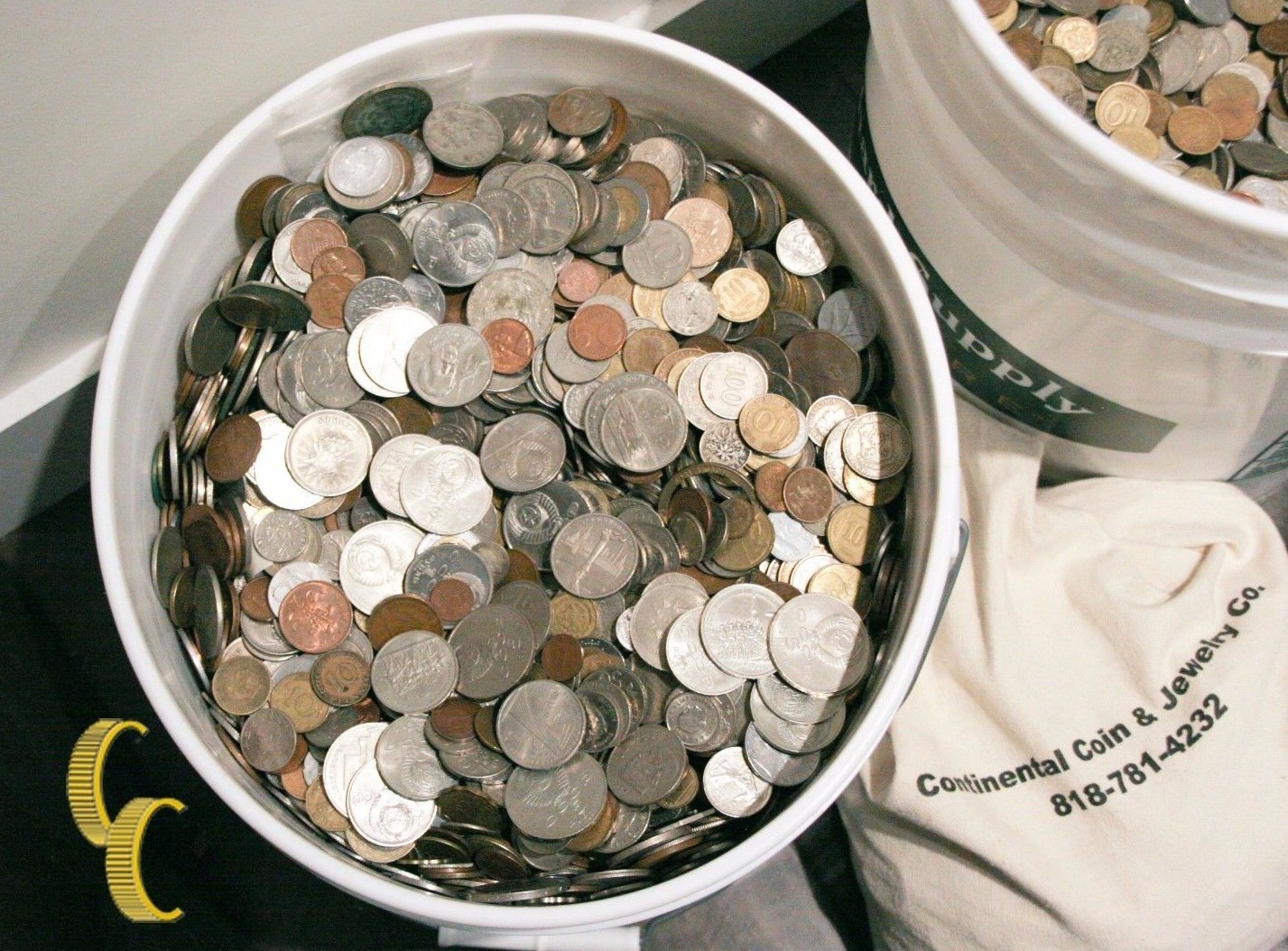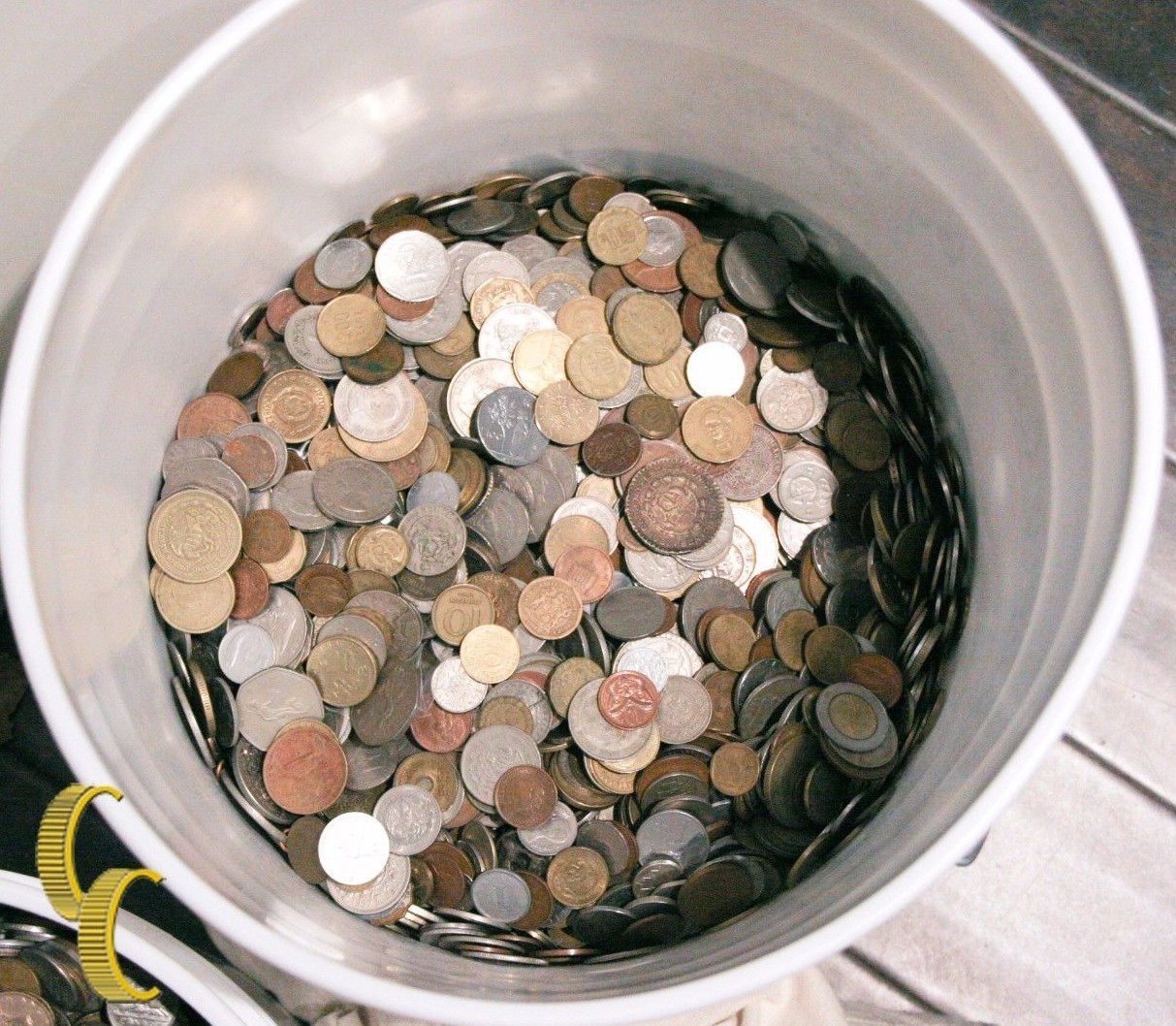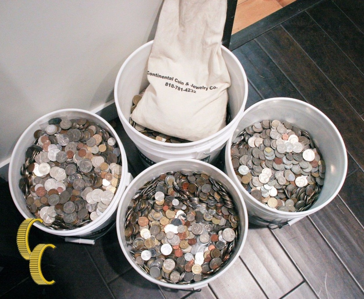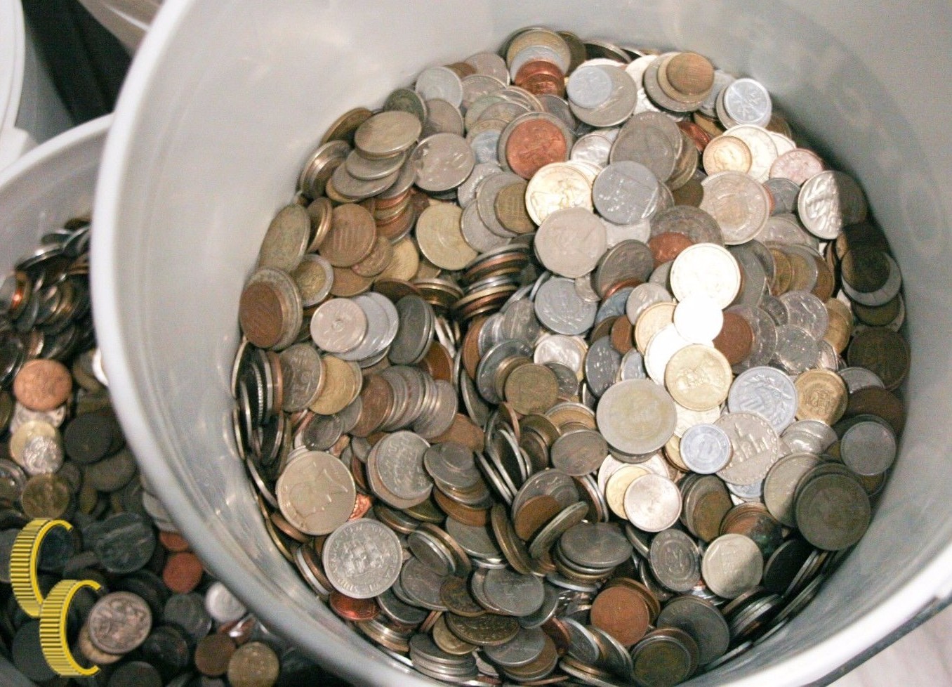 Nous avons des milliers de livres de pieces etrangeres stockees dans des seaux et des bacs