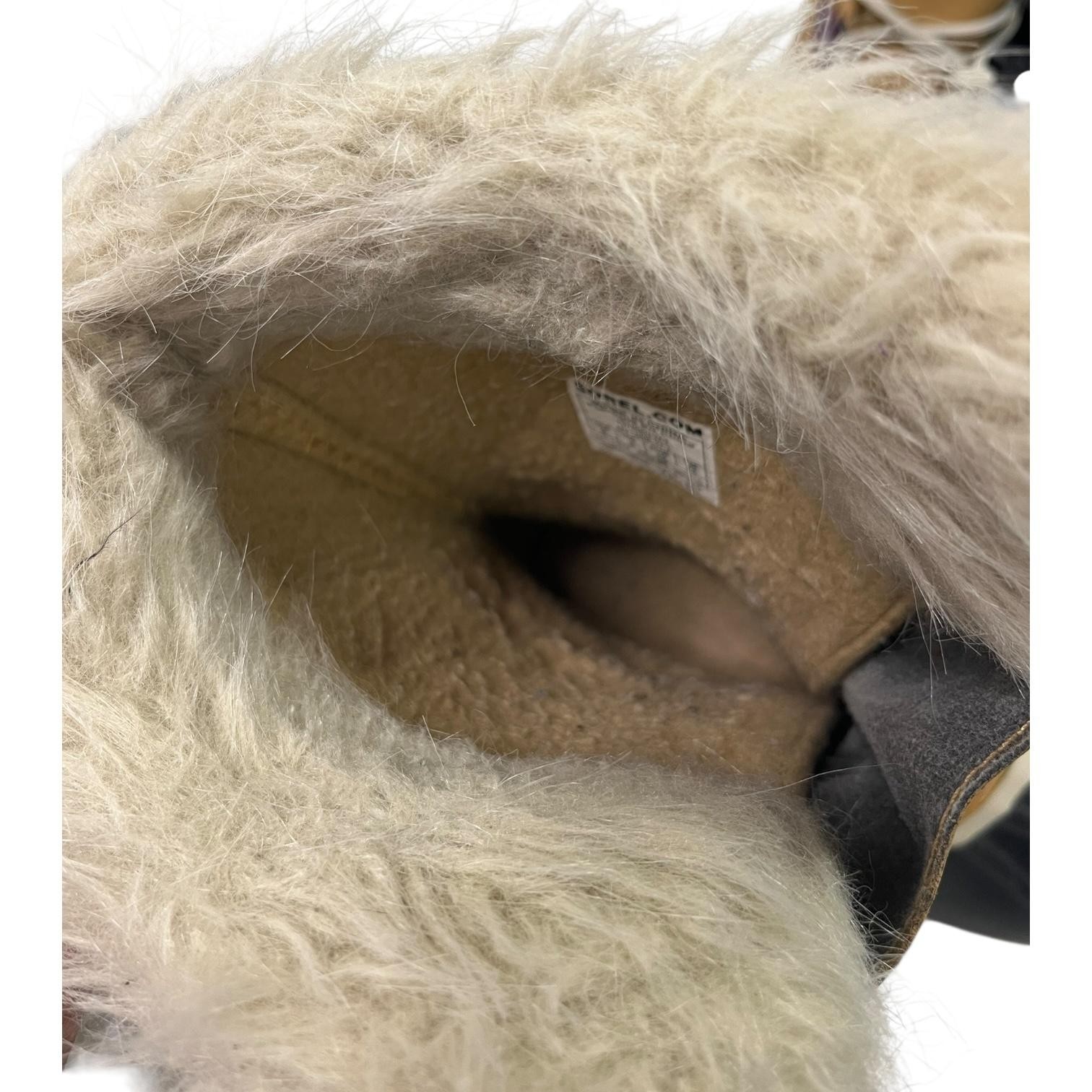 Condition: Good used condition. Light signs of wear on outer leather and rubber. Tread in excellent shape with minimal wear on purple rubber outsoles. Faux fur trim and interior lining in very good condition. Review all photos for full condition details.