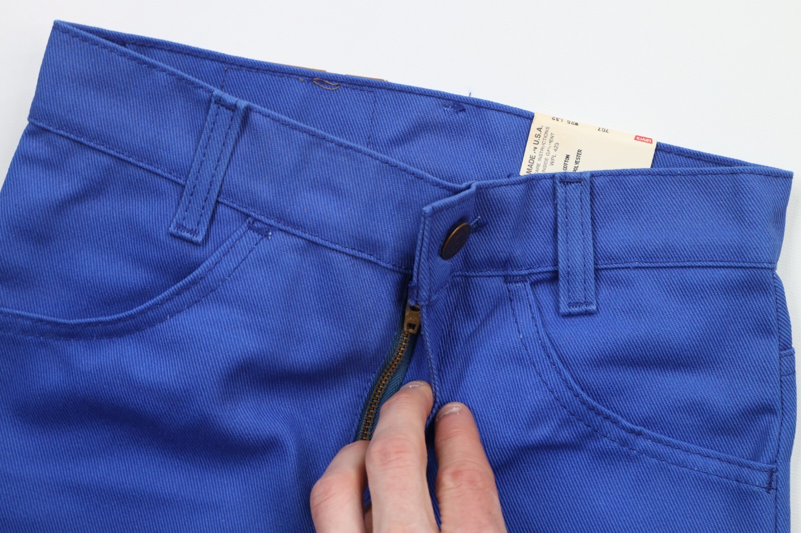 New with defects. Back waist patch is cracked. USA made