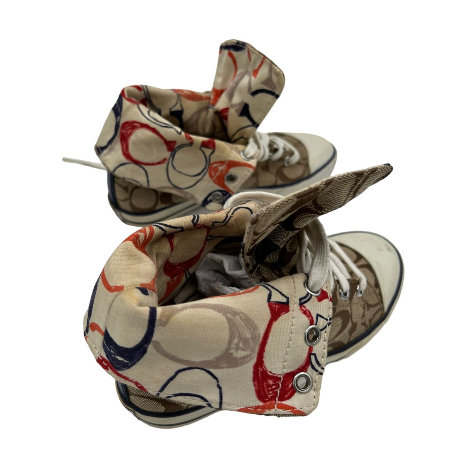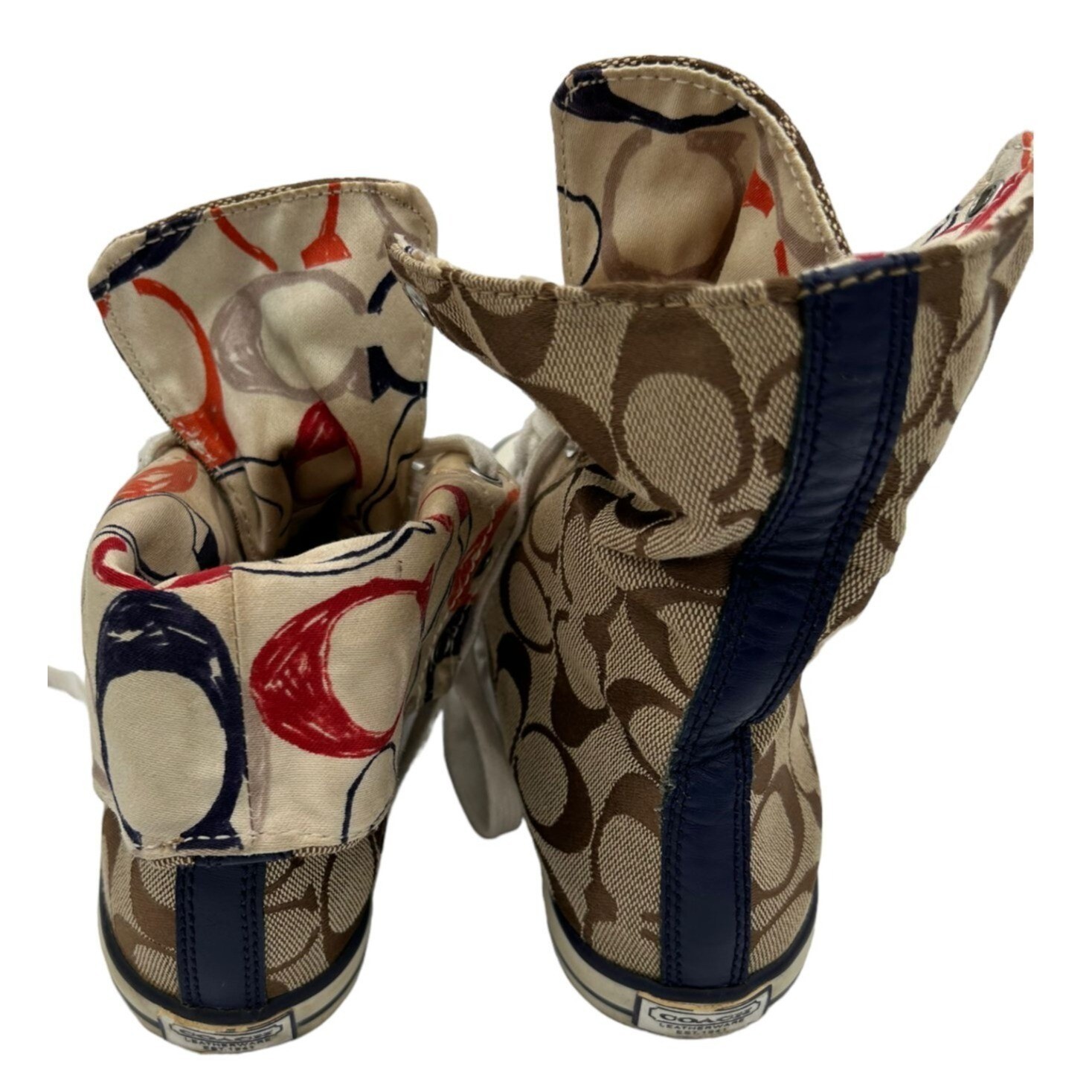 coach bonney canvas fold over womens high top 5.5B sneakers brown signature a1885