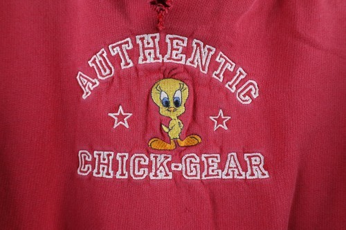 Vintage Y2K 2000 Looney Tunes Womens Small Thrashed Tweety Bird Sweatshirt Red