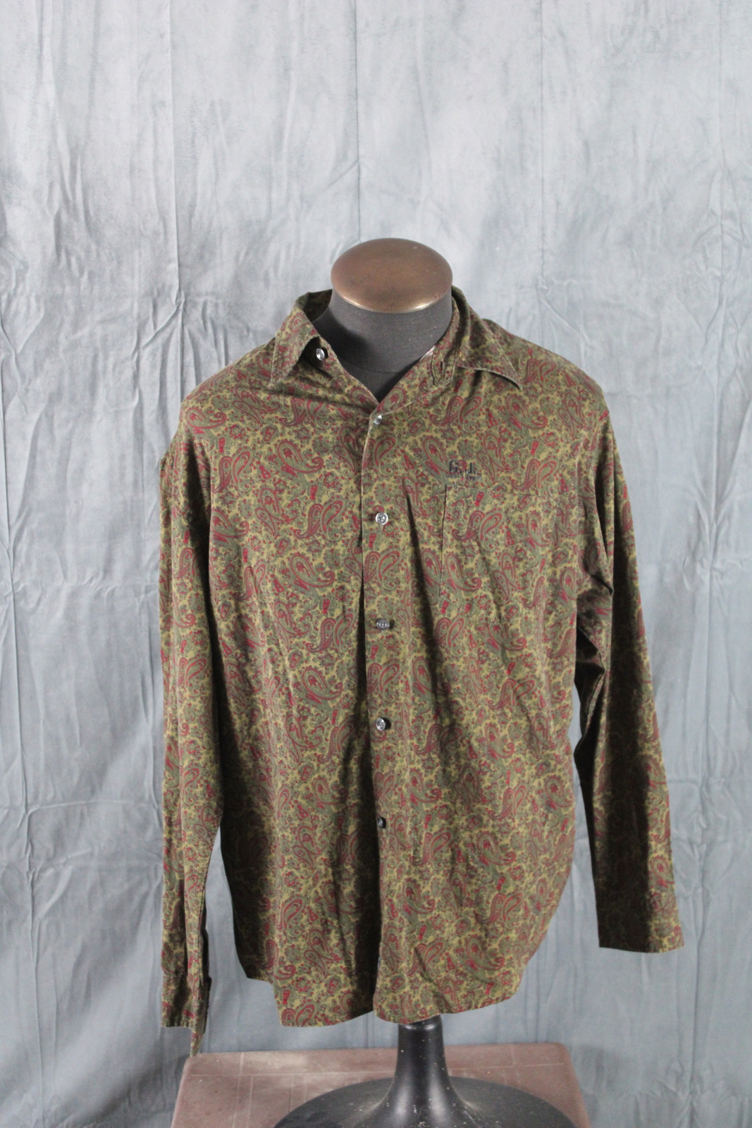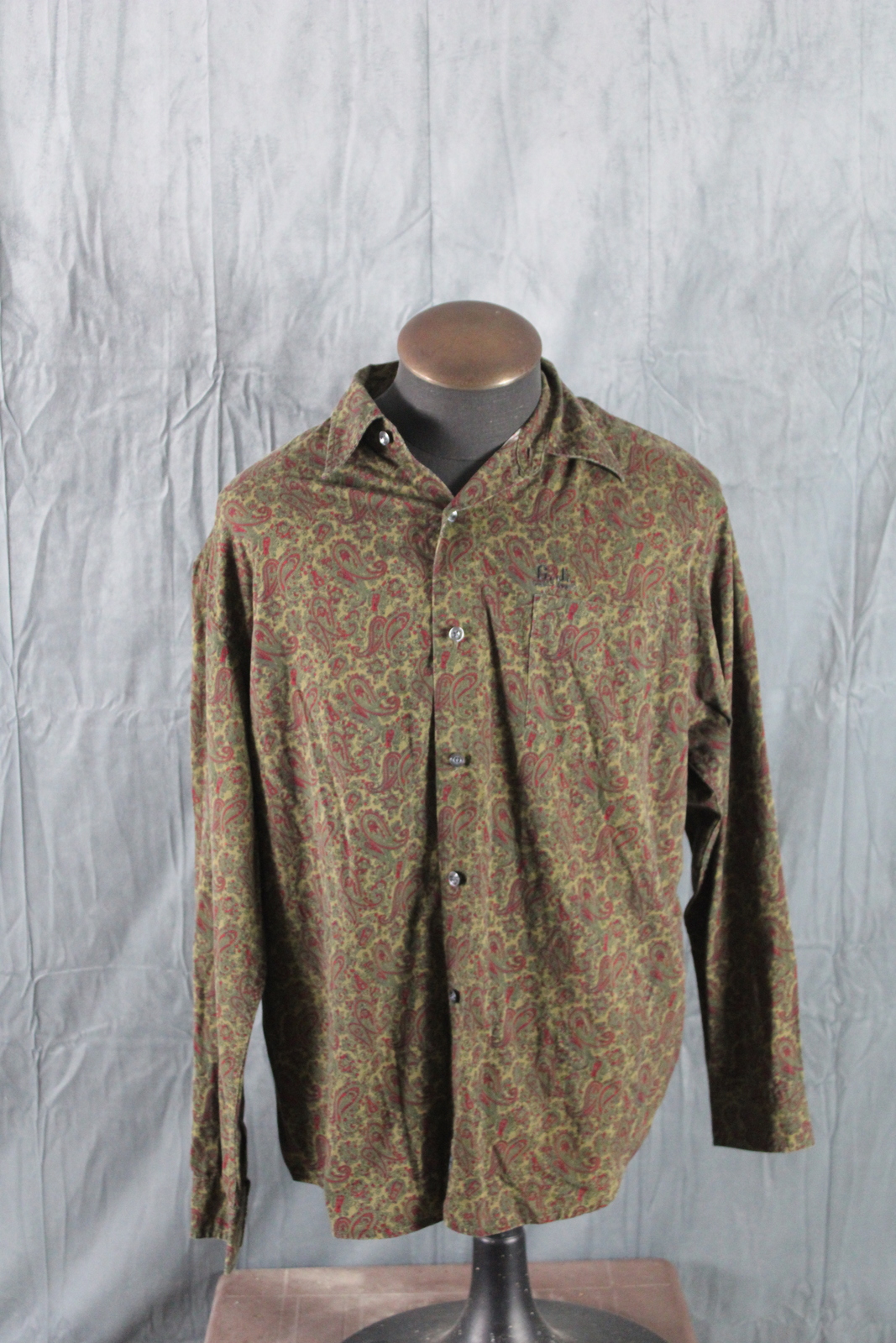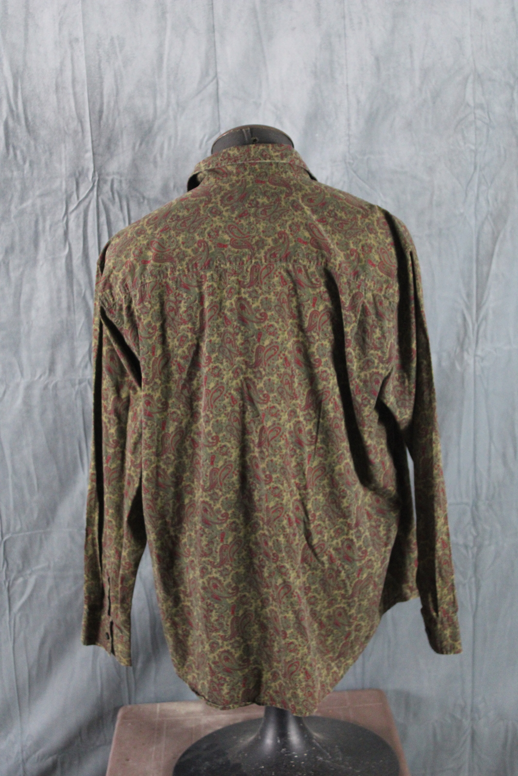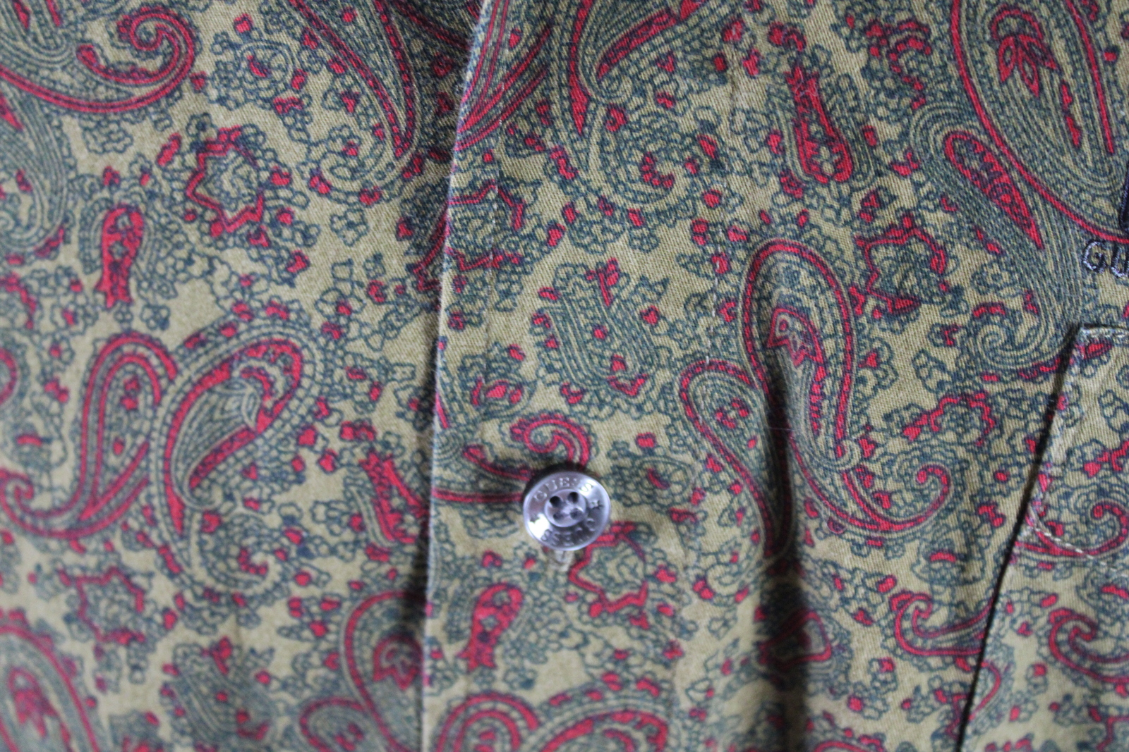 Vintage Guess Button Down Shirt - Green, Brown Purple Paisley Pattern - Mens XL