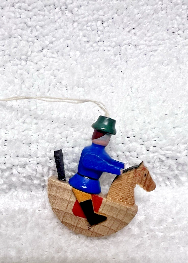 Erzgebirge Style Vintage Man on Rocking Horse Christmas Ornament