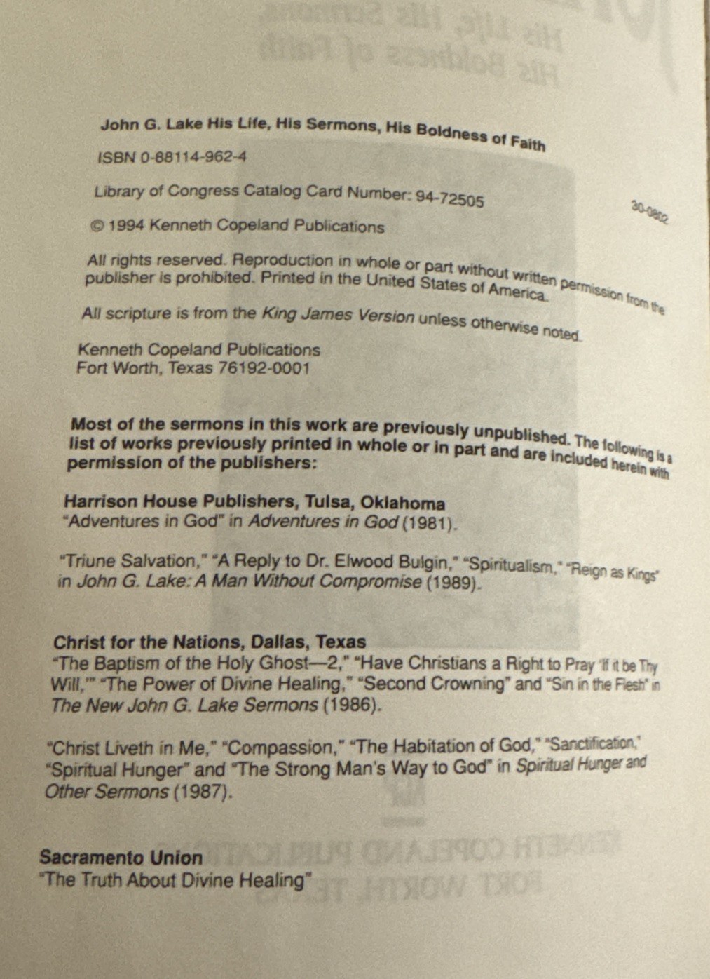 John G. Lake : His Life, His Sermons, His Boldness of Faith by K. Copeland