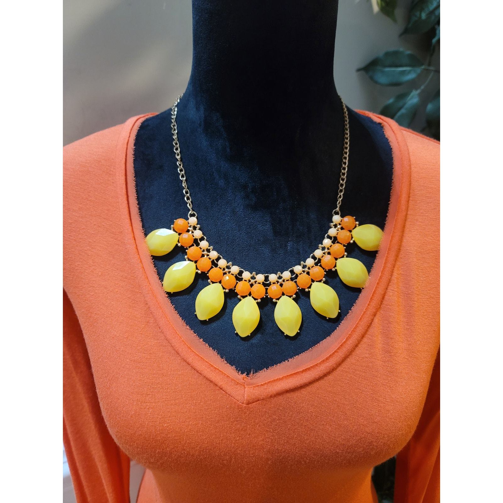 In a cheerful orange hue, this V-neck shirt is perfect for adding a pop of color to any outfit. Crafted with a comfortable stretch fabric, it offers a flattering fit and ease of movement.