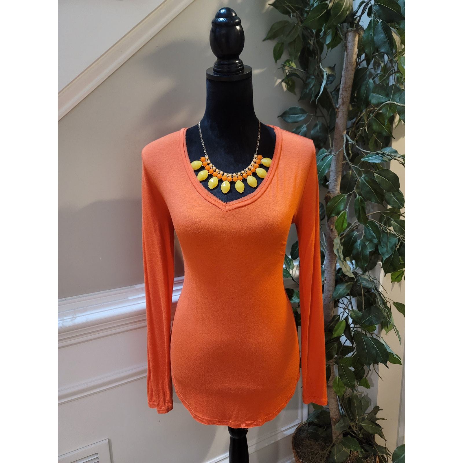 Abercrombie and Fitch Top Women's Small Orange Long Sleeve V Neck Stretch Shirt