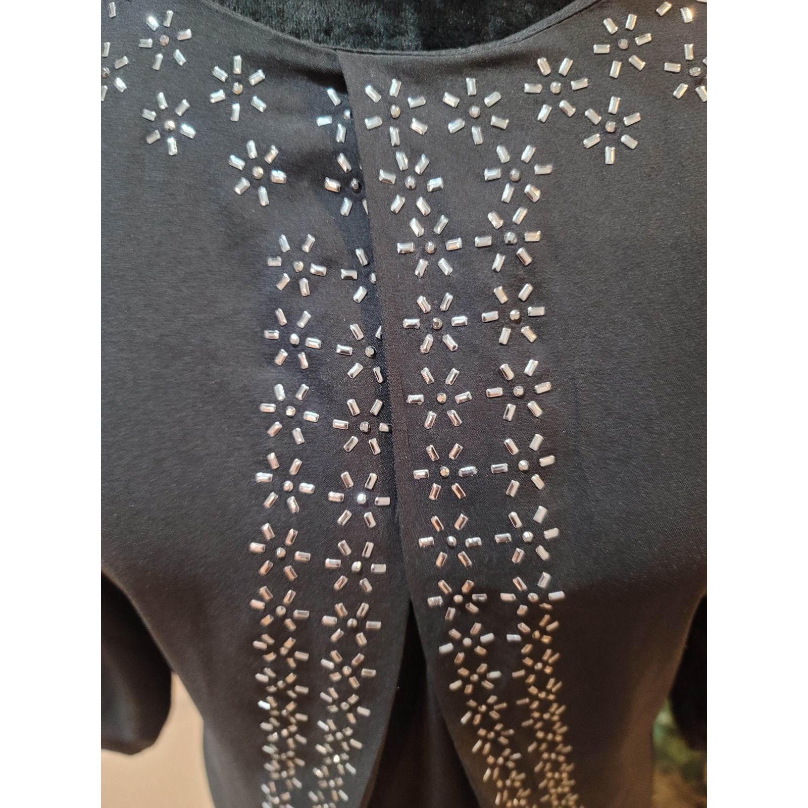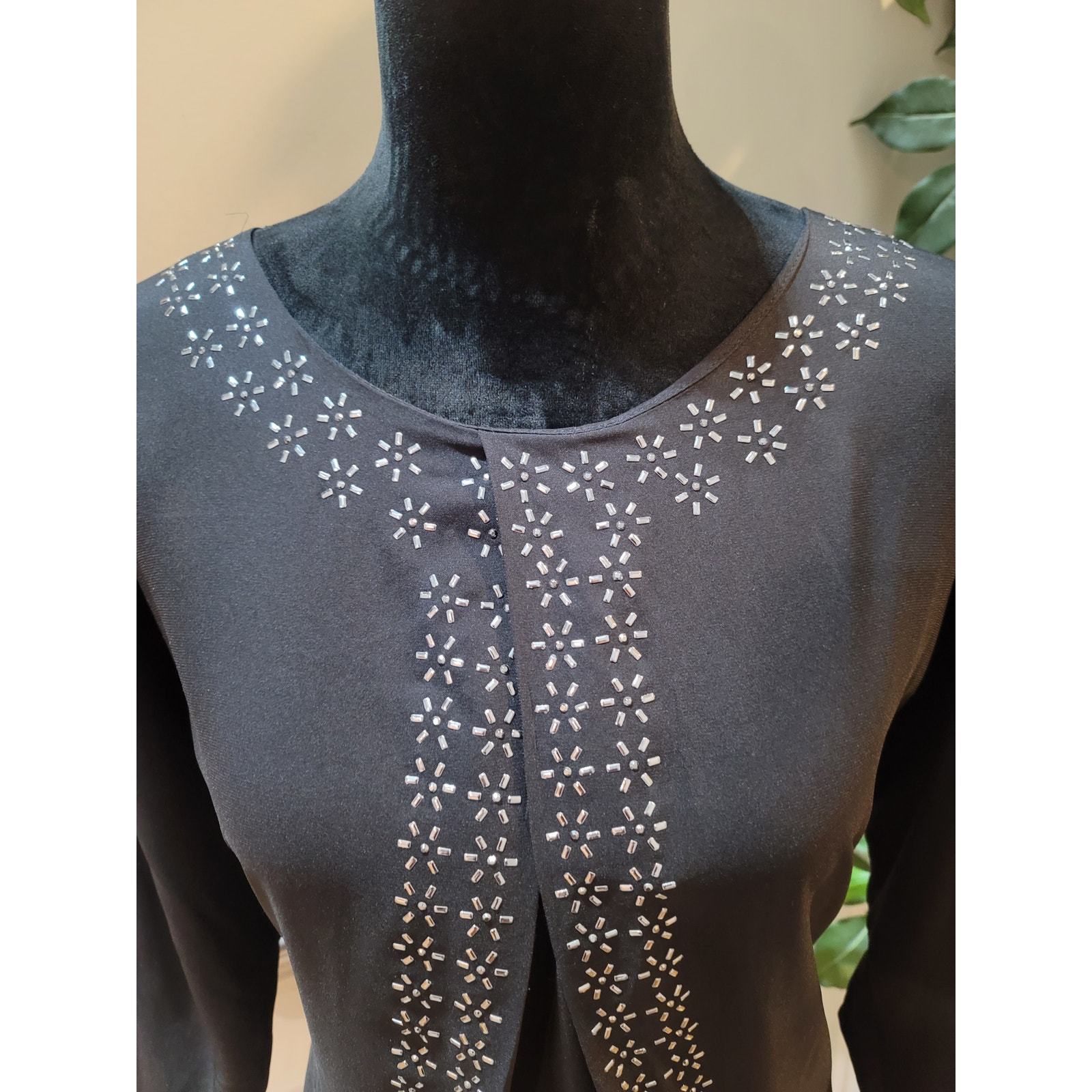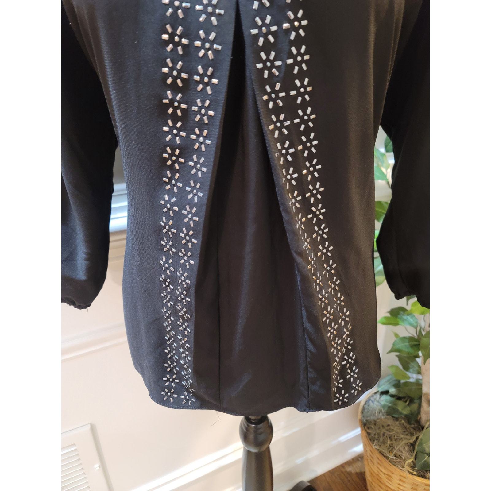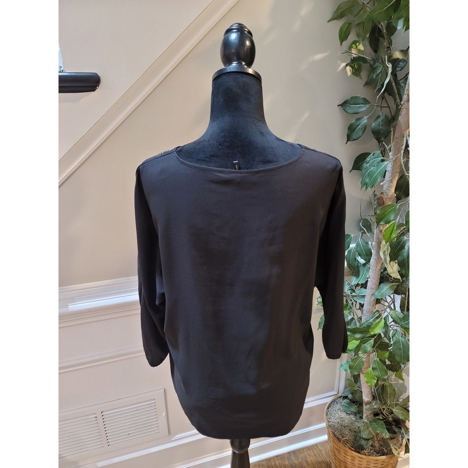 Daisy Fuentes Blouse Women's Size S Black Embellished Silver Accents Crew Neck