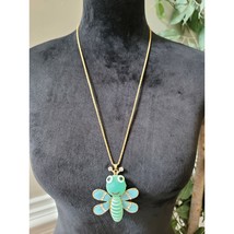 Betsey Johnson Gold Bee Pendant Necklace with Turquoise Wings and Crystal Accent